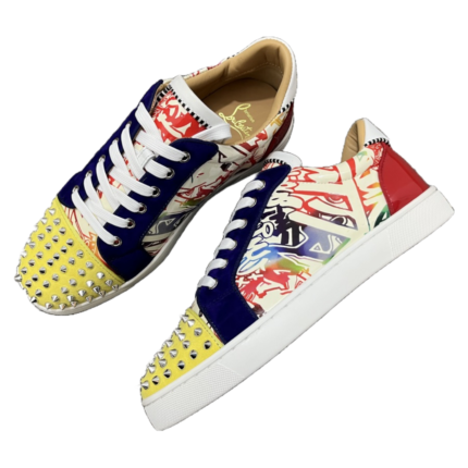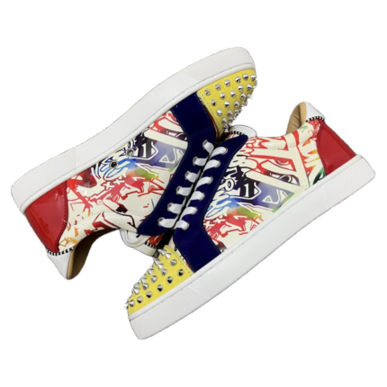 Christian Louboutin Graphic Design Blue Suede Yellow Leather Sneakers