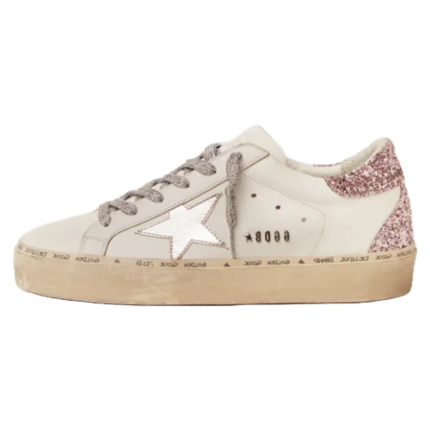 Golden Goose Hi Star sneakers with silver laminated leather star and quartz-pink glitter heel