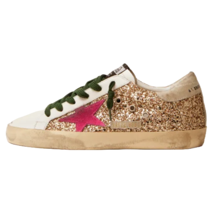 Golden Goose Super-Star sneakers in gold glitter with fluorescent pink suede star