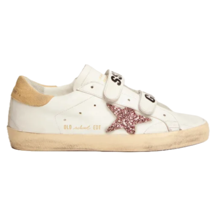 Golden Goose Old School sneakers with pink glitter star and sand-colored suede heel