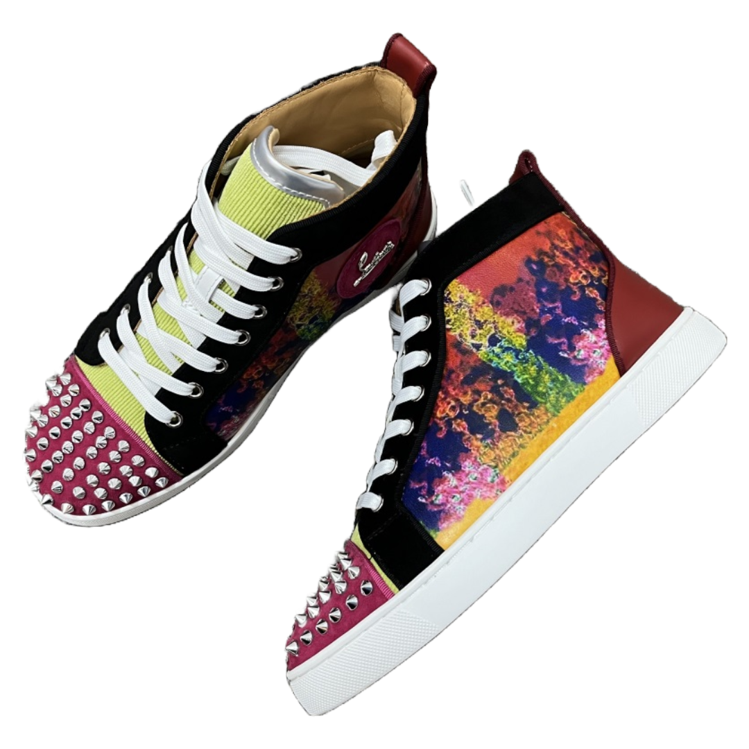 Christian Louboutin Spike Studs Leather x fabric High-top Sneakers