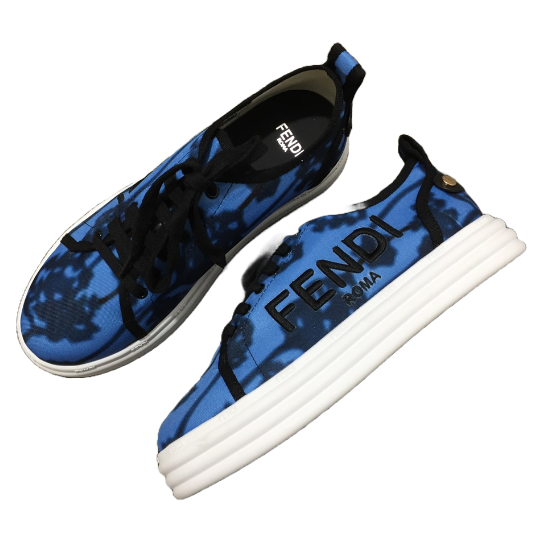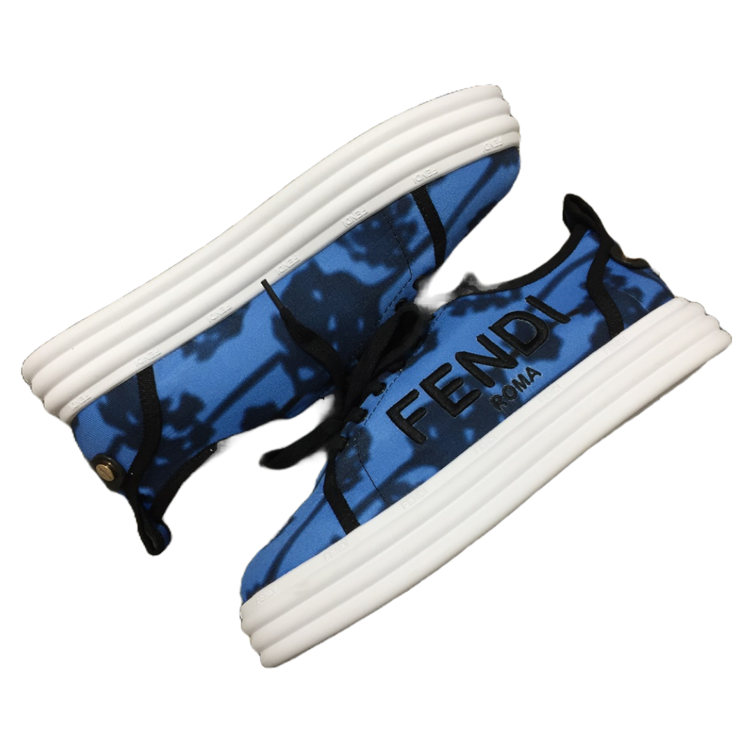fendi canvas printed blue sneakers