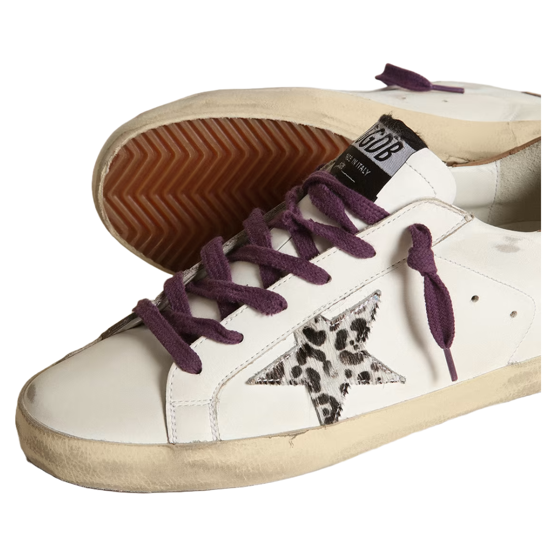 golden goose Super-Star with leopard pony skin star and brown nubuck heel