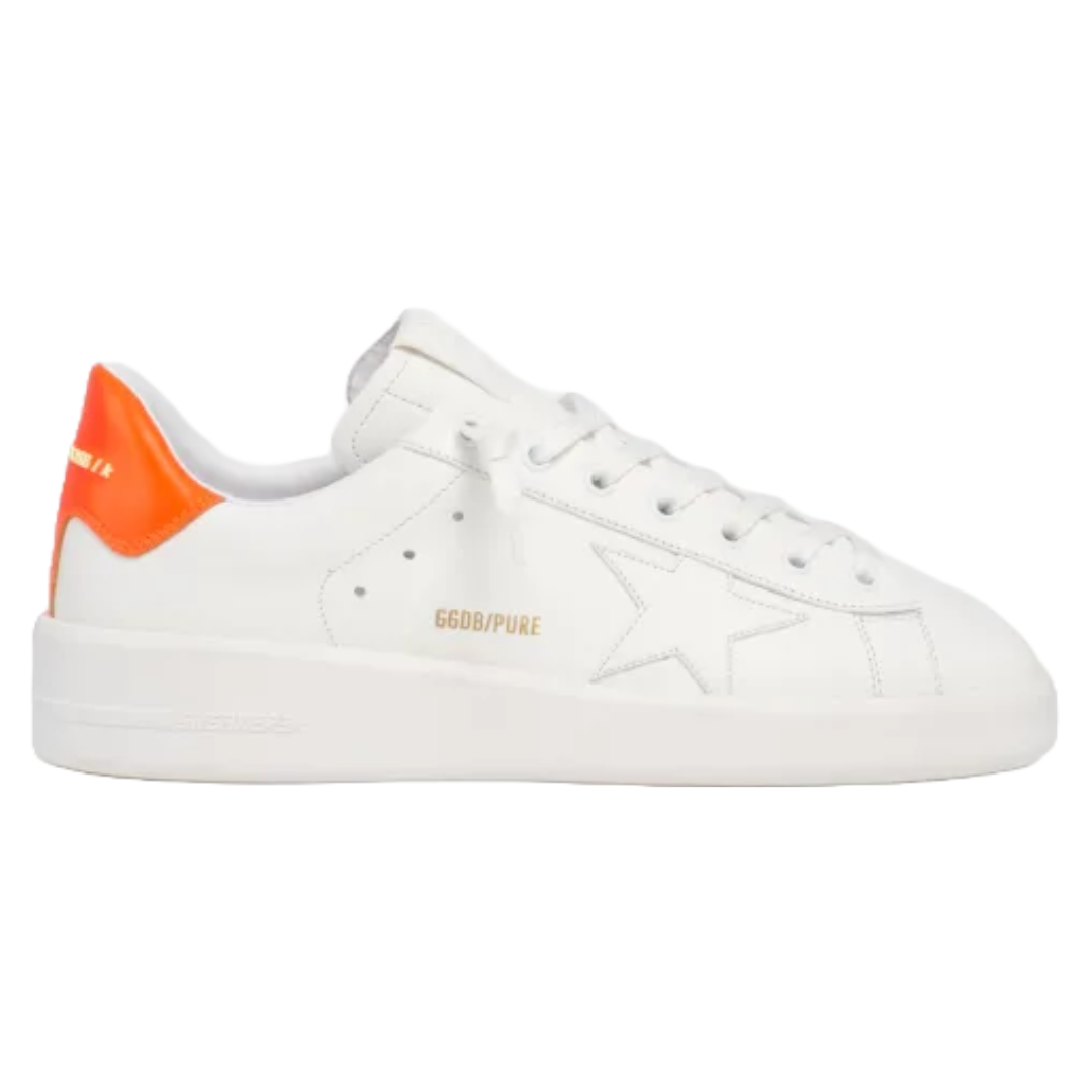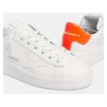 Golden Goose White Purestar sneakers with fluorescent orange heel tab