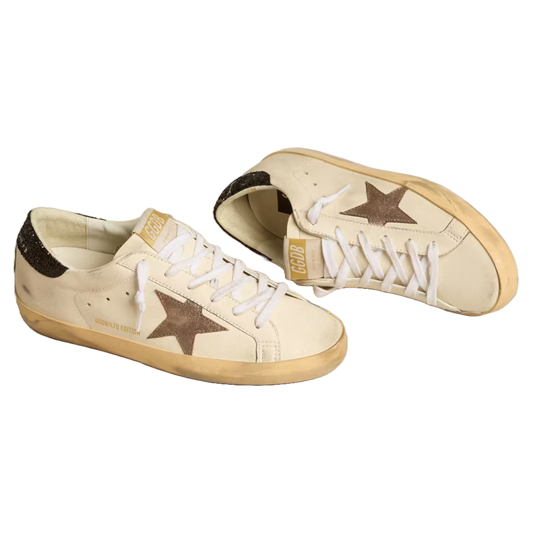 golden goose Super-Star LTD with laminated leather star and black glitter heel