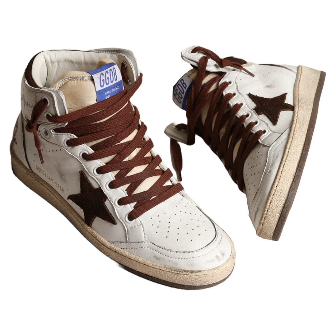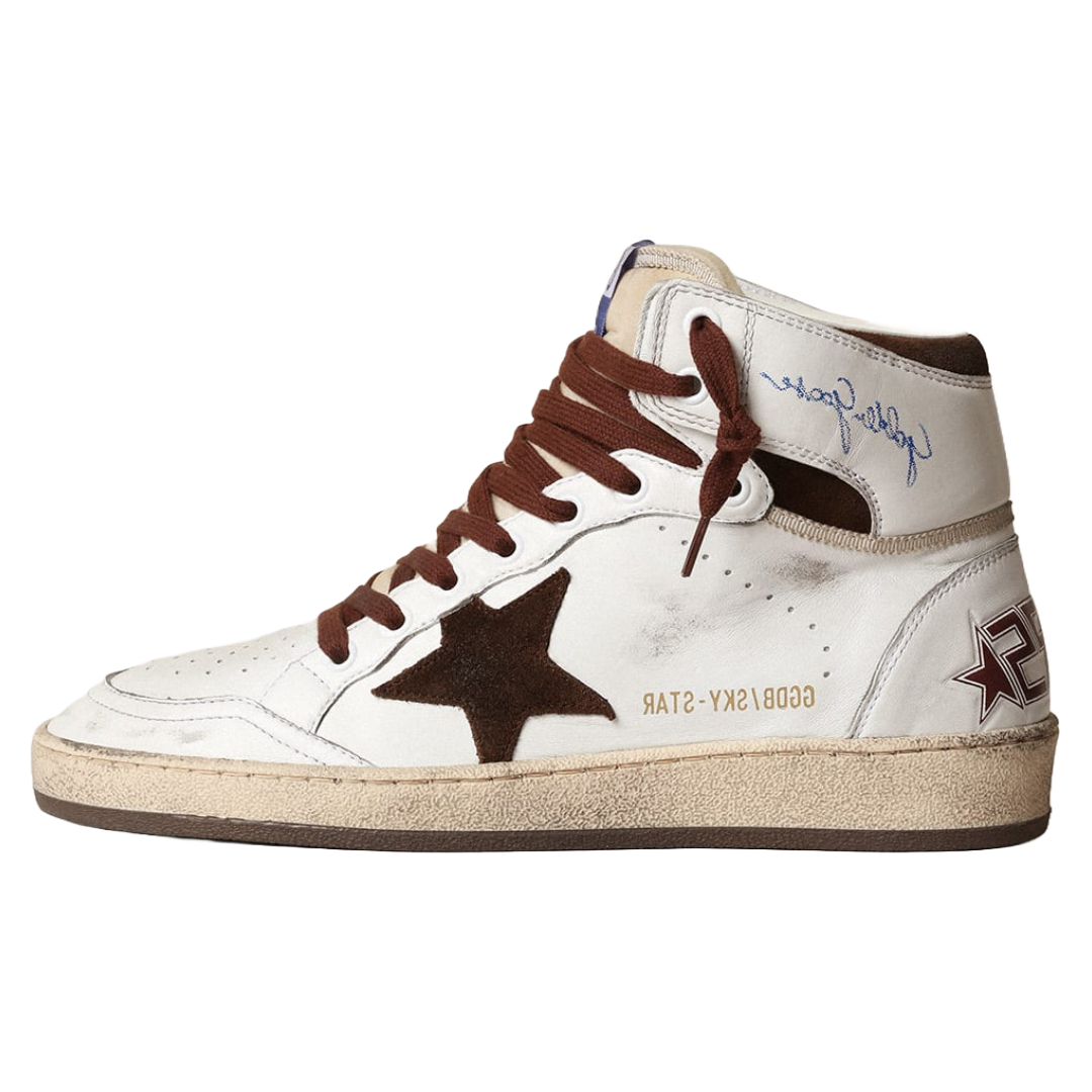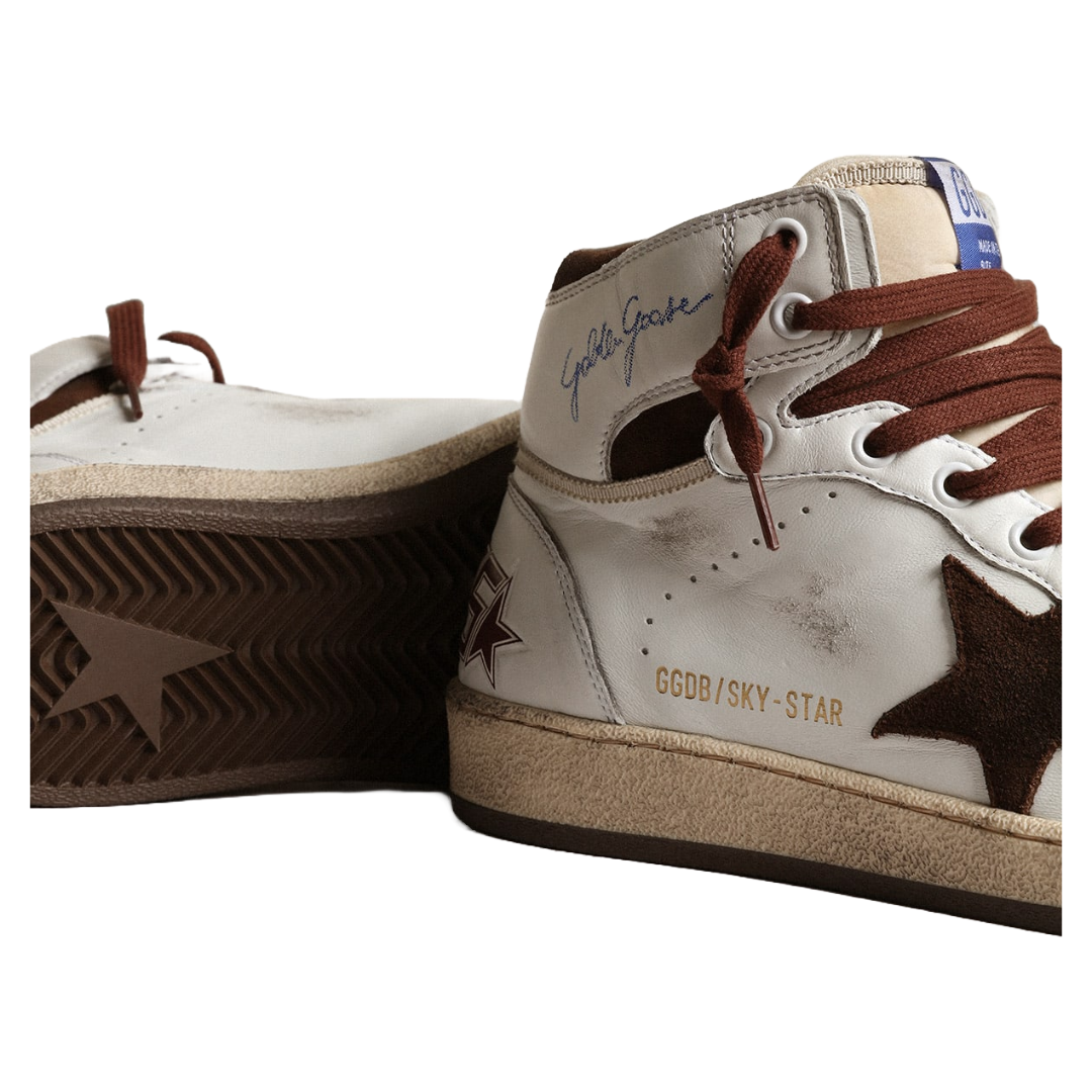 Golden Goose Women’s Sky-Star in white nappa leather with chocolate suede star