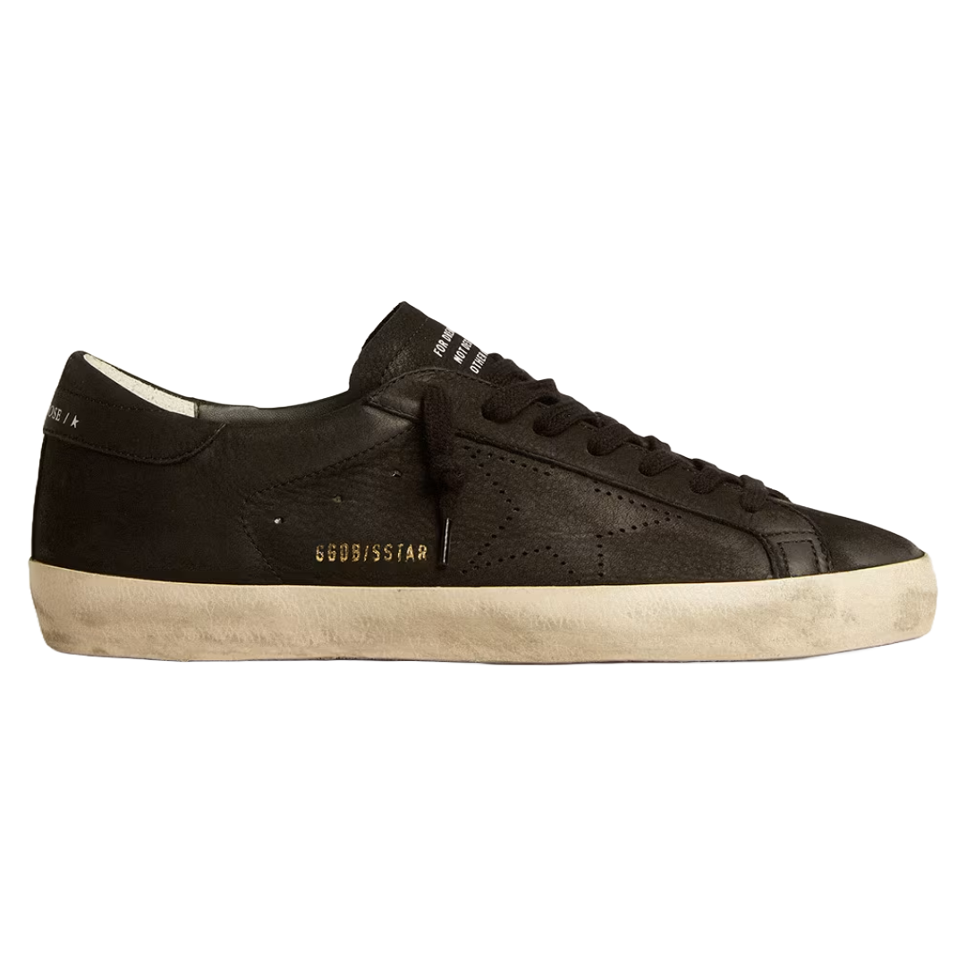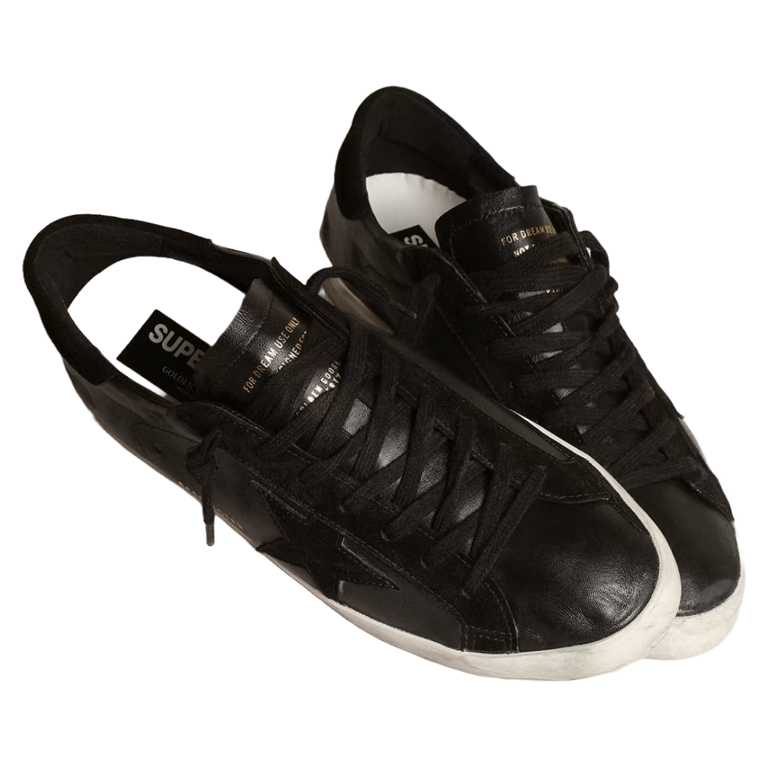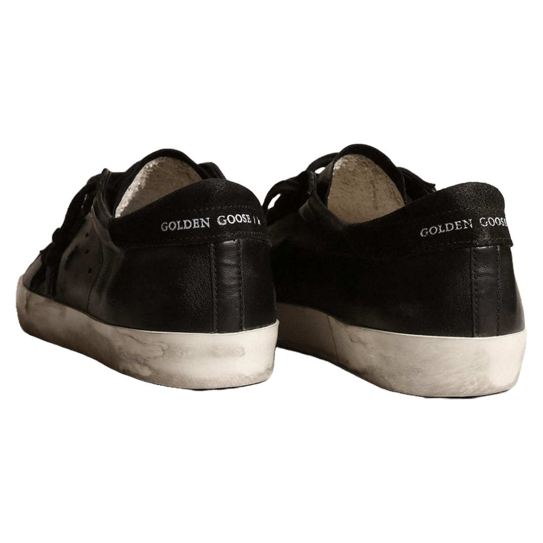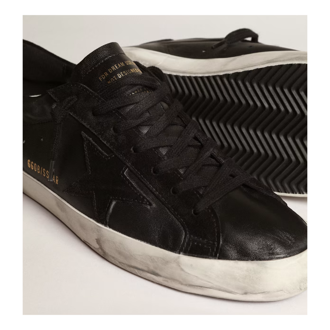 golden goose Men’s Super-Star in black nappa with black suede star and heel