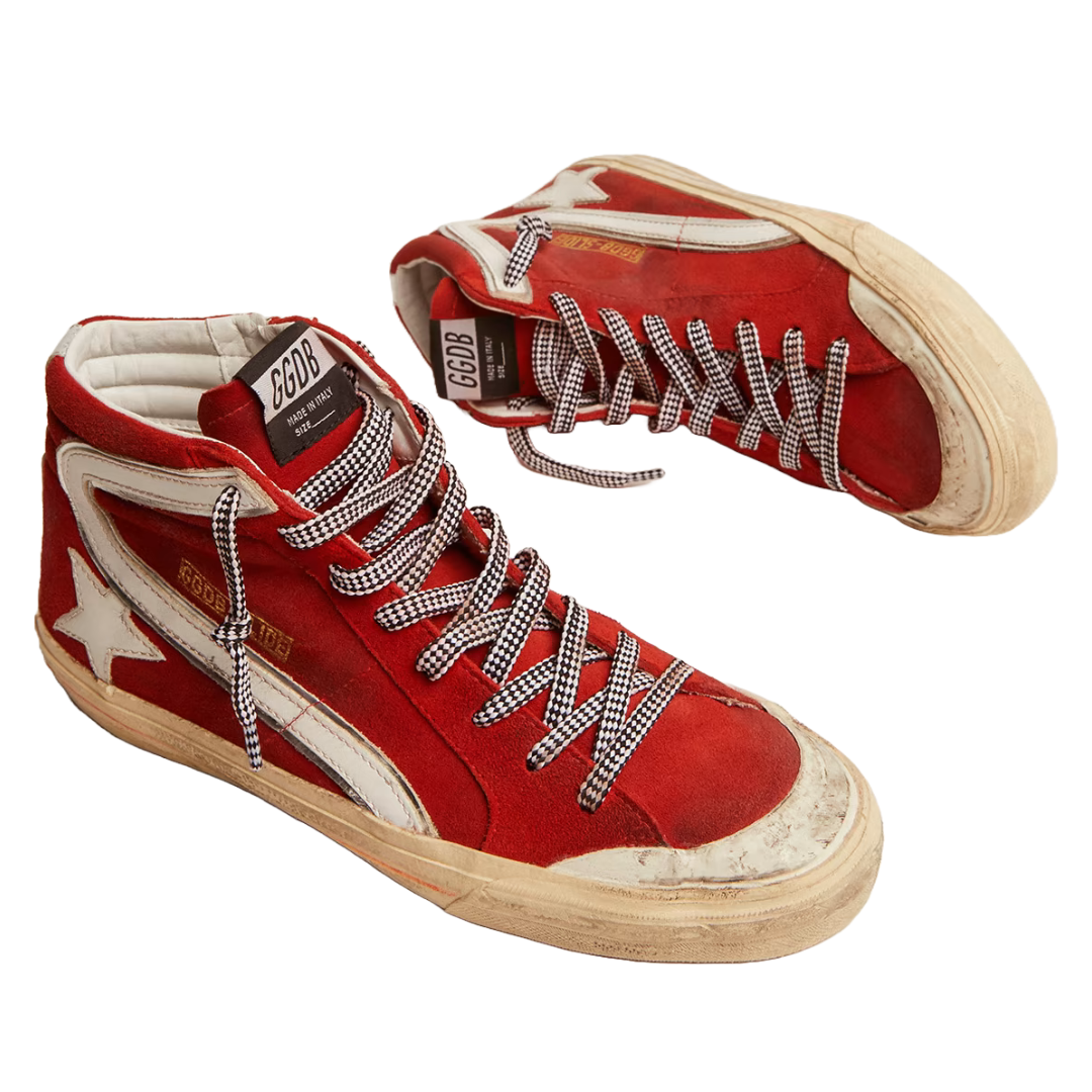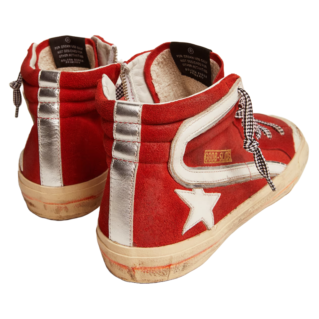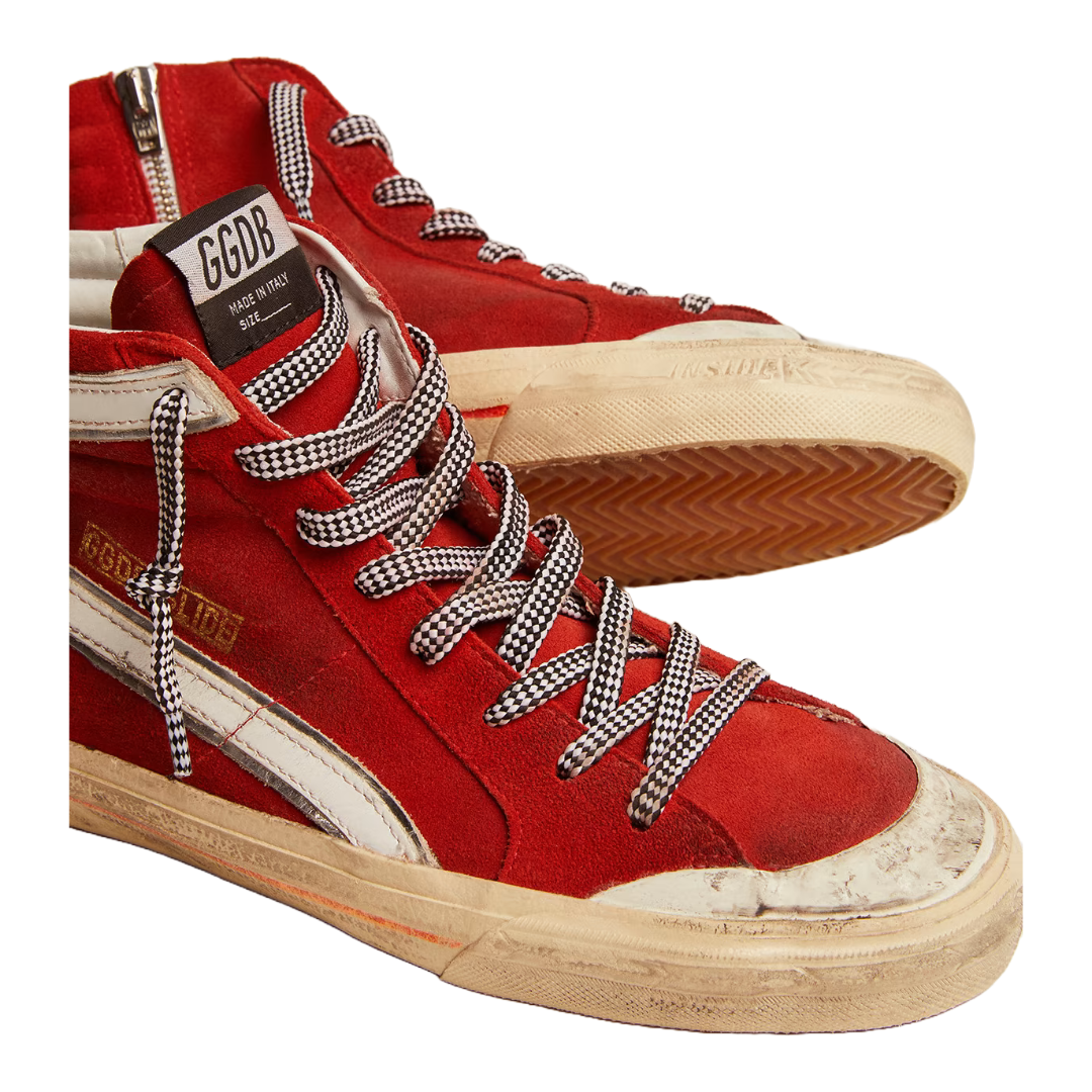 golden goose Sneaker Slide Penstar in suede rosso e dettagli bianchi
