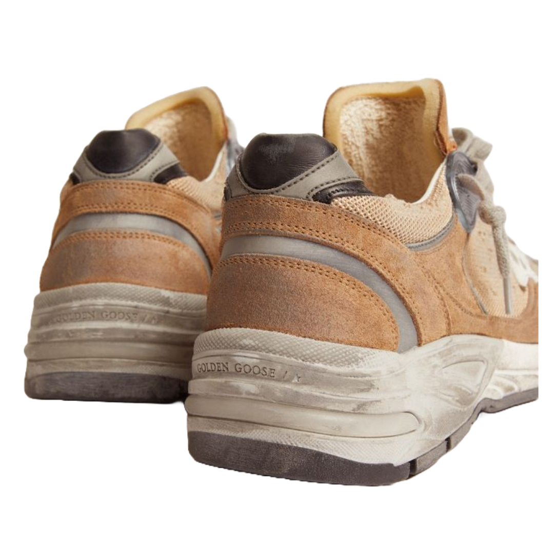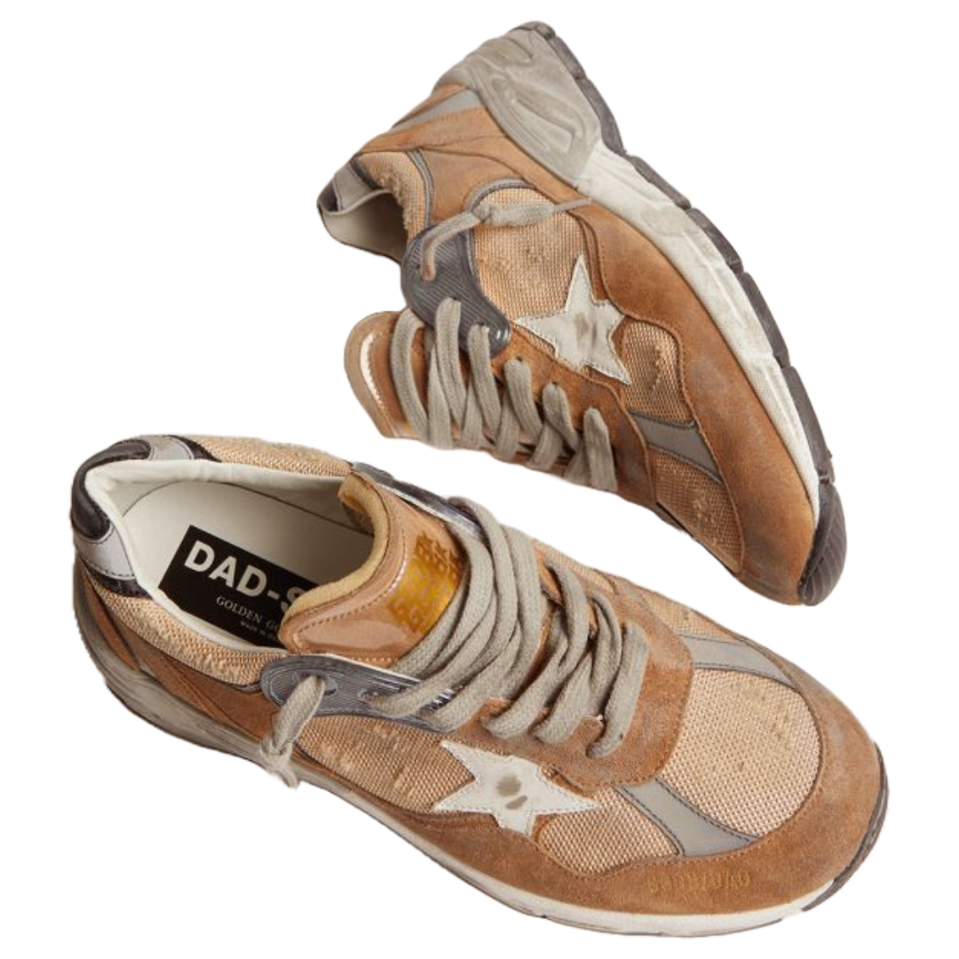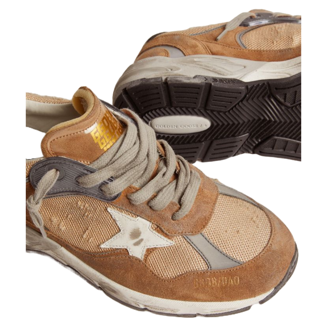 Golden Goose Dad-Star sneakers in tobacco-colored mesh and suede with white leather star and black leather heel