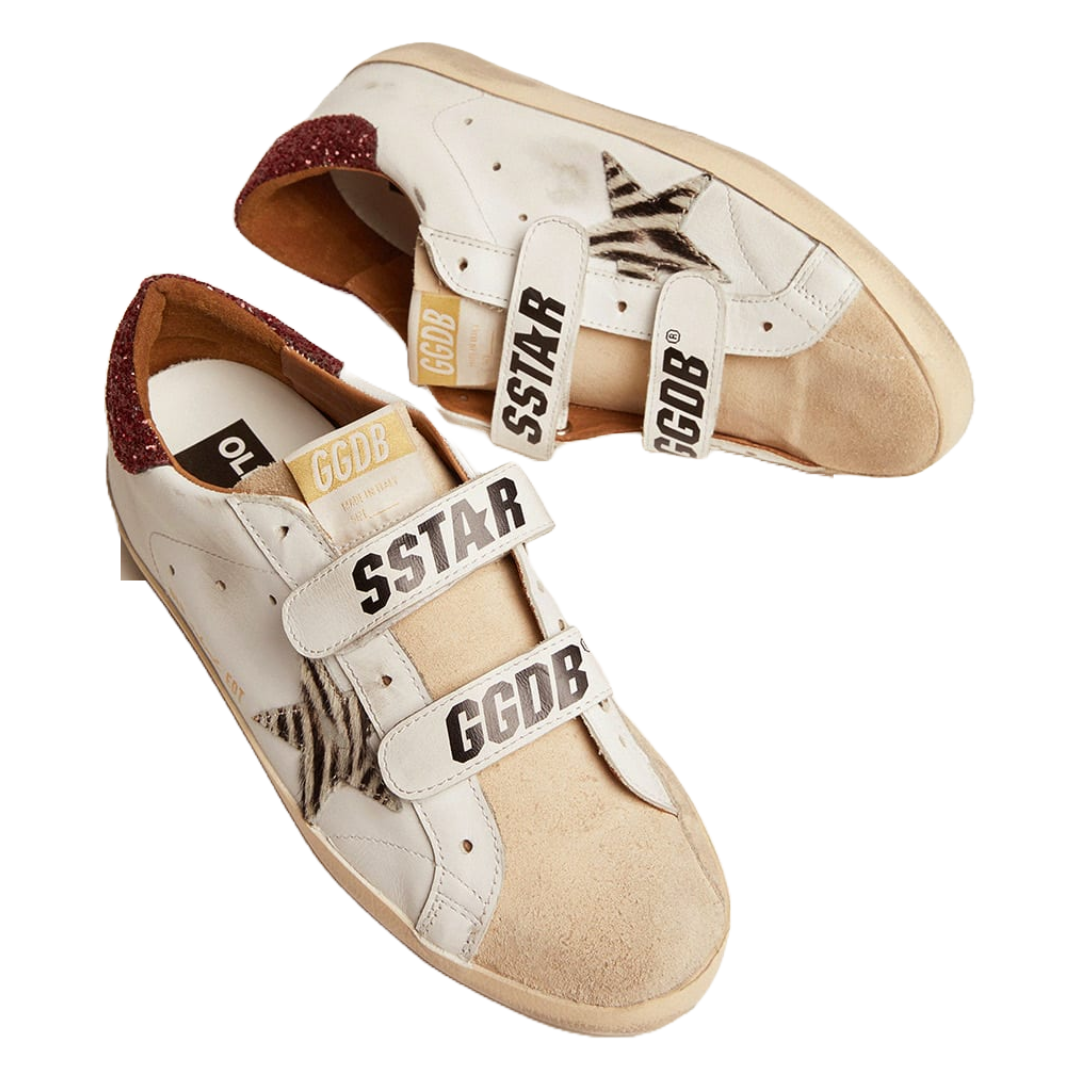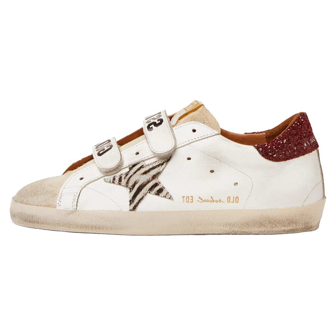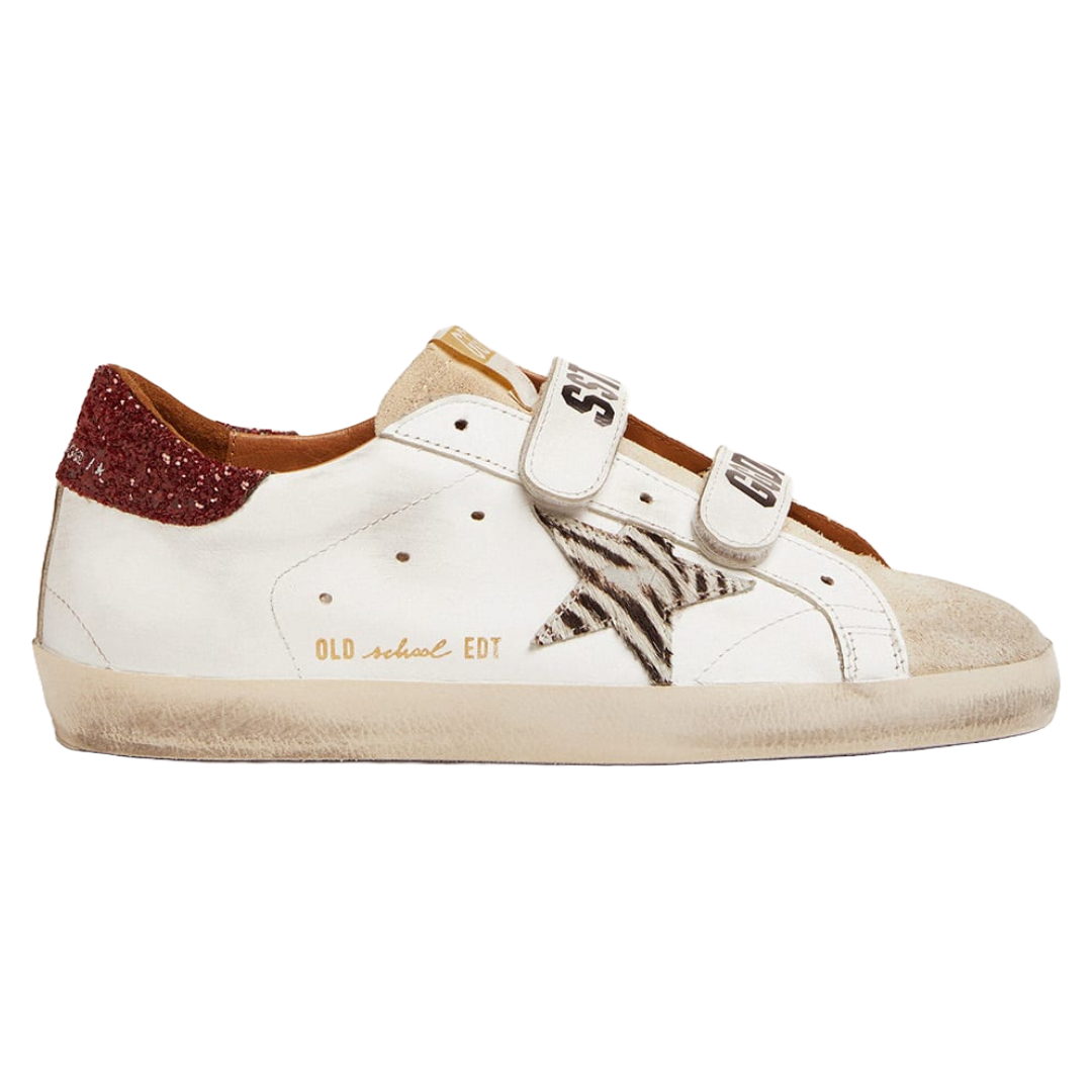 Golden Goose Old School sneakers with zebra-print pony skin star and red glitter heel