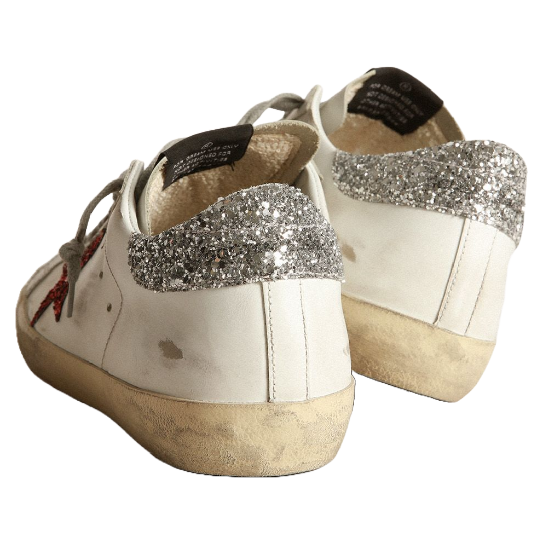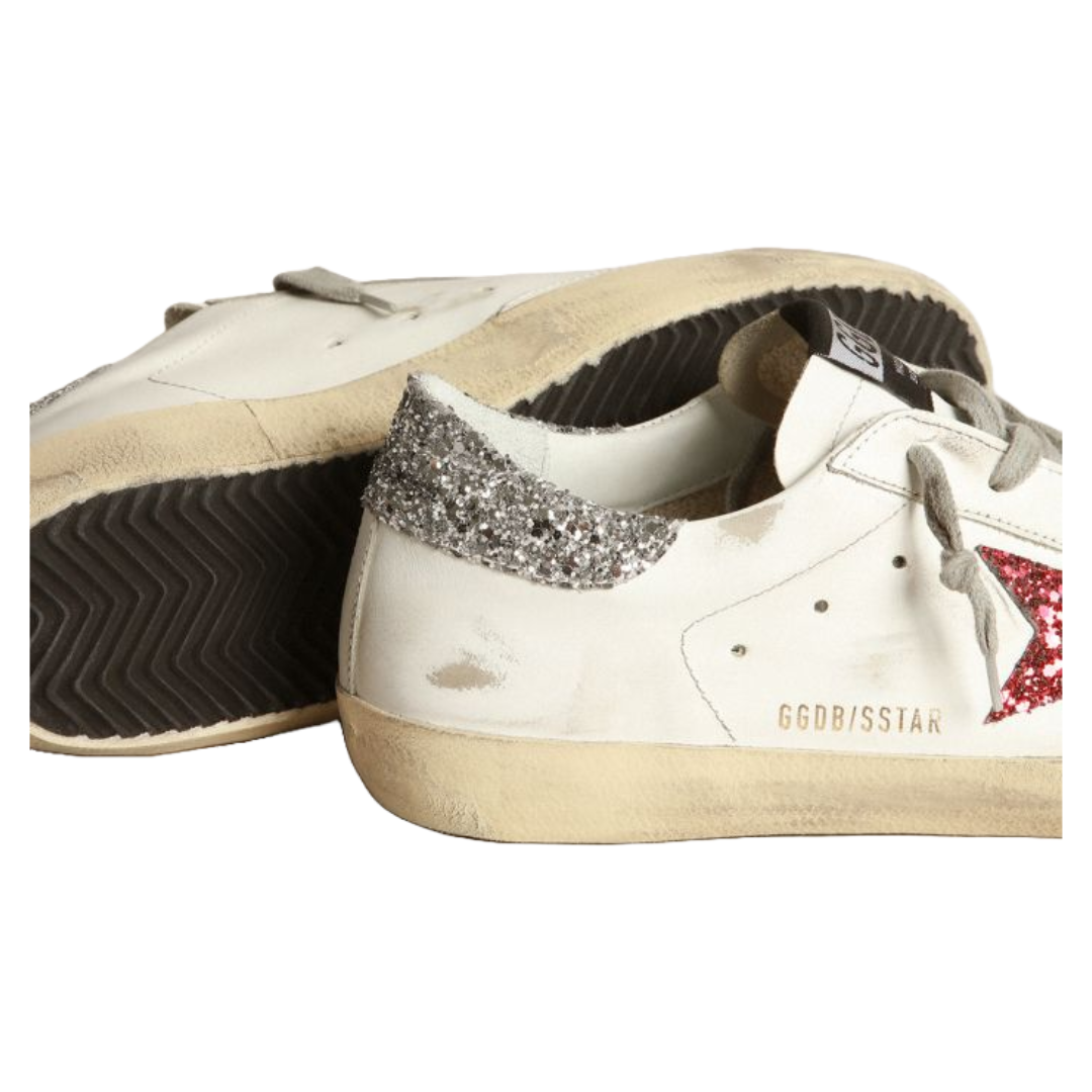 Golden Goose White Super-Star sneakers in leather with glittery red star