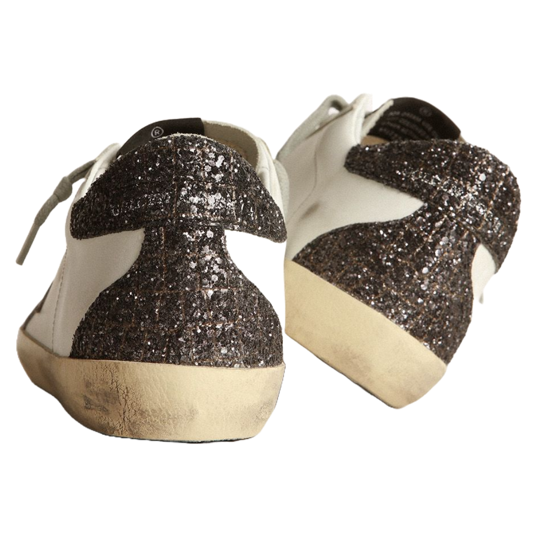 Golden Goose Super-Star sneakers with lilac leather star and purple glitter crocodile-print heel