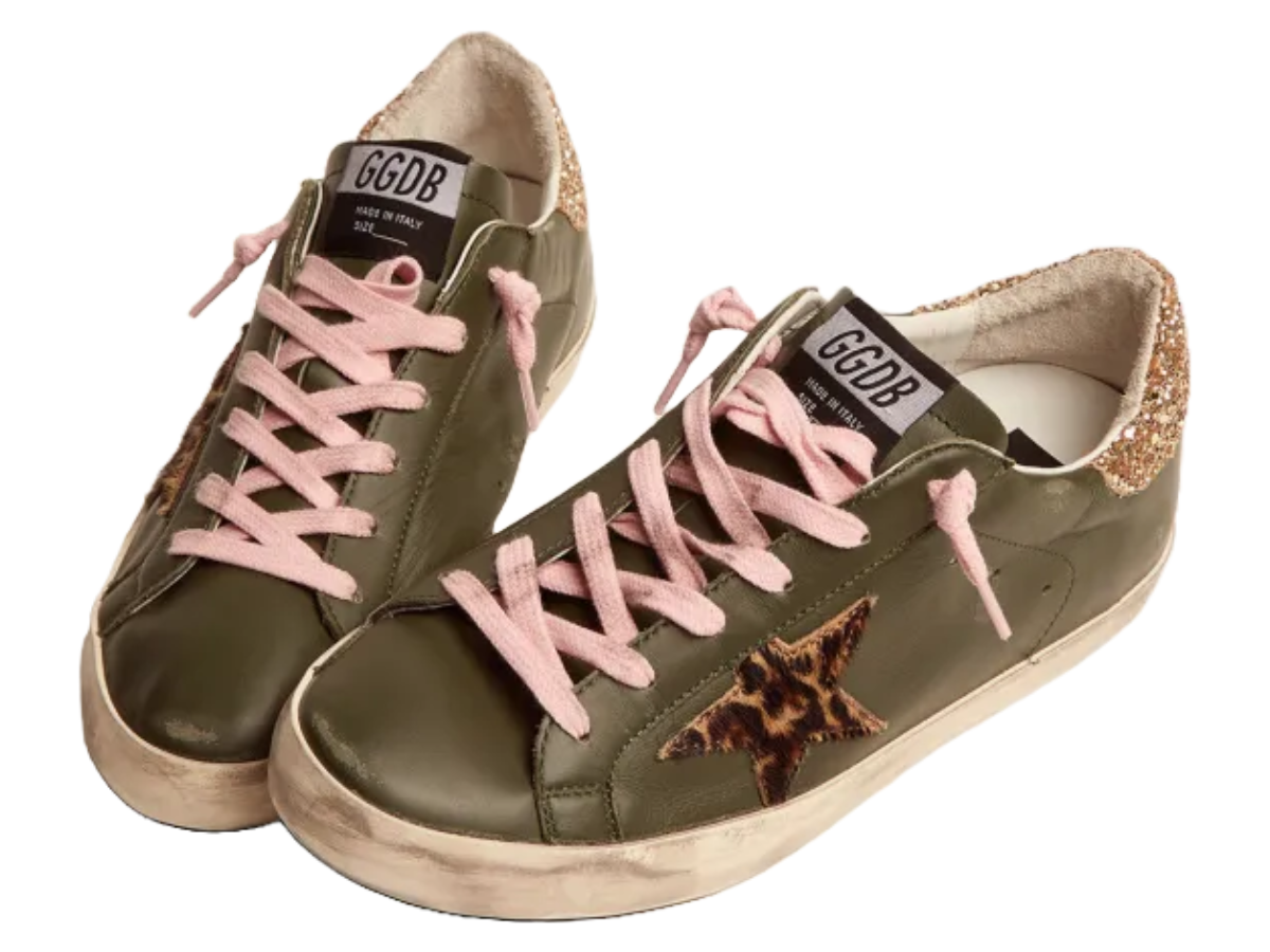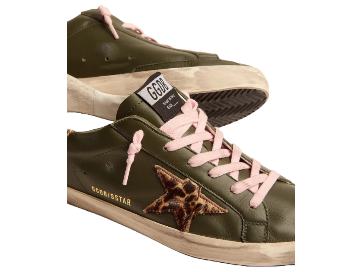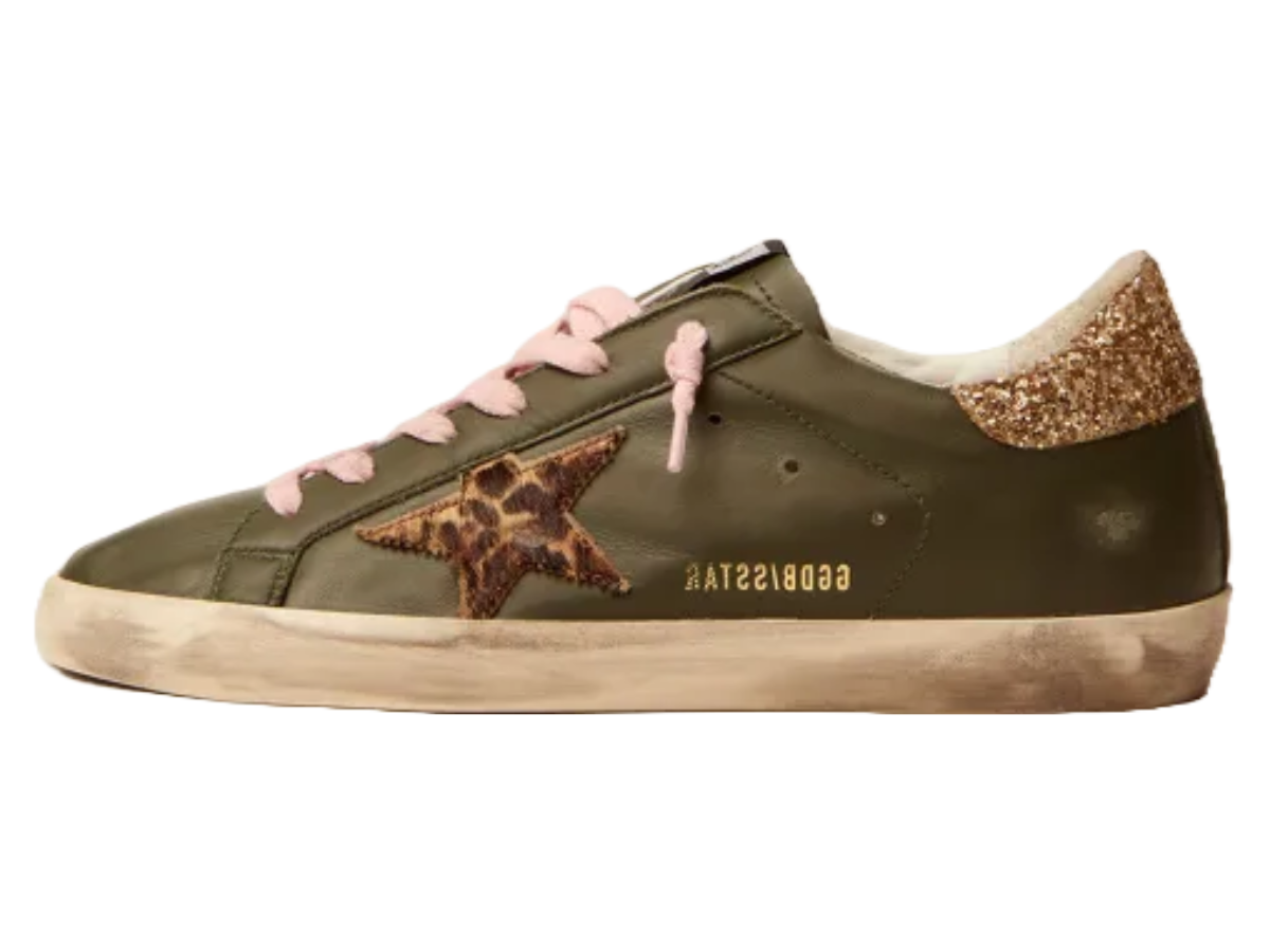 Wees de eerste om “Golden Goose Super-Star sneakers in dark green leather with gold glitter heel” te beoordelen Reactie annuleren