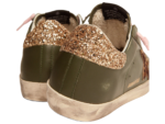 Golden Goose Super-Star sneakers in dark green leather with gold glitter heel