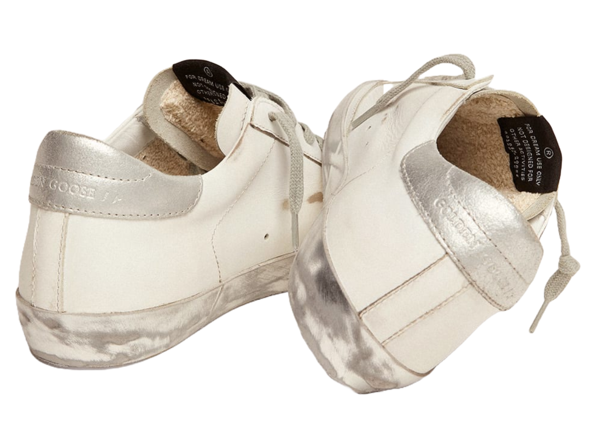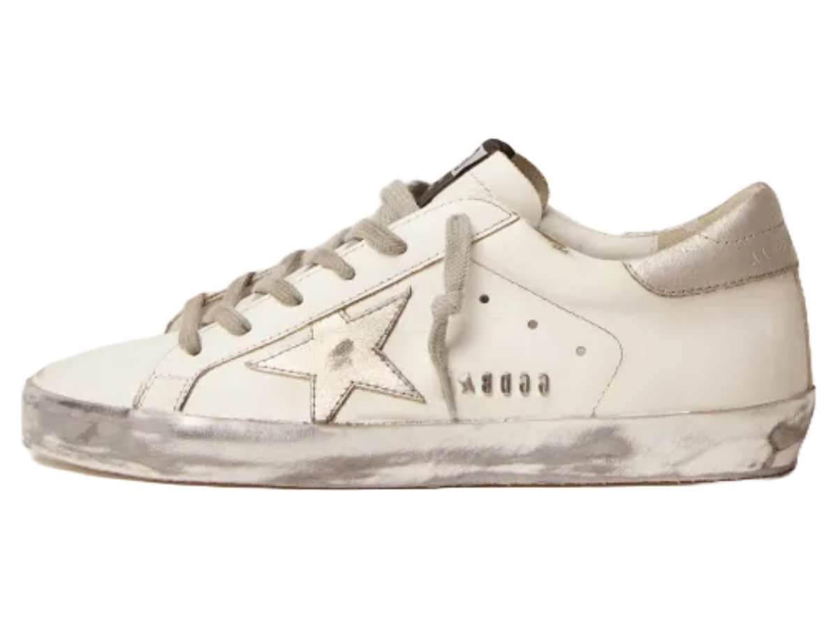 Golden Goose Super-Star sneakers with silver sparkle foxing and metal stud lettering
