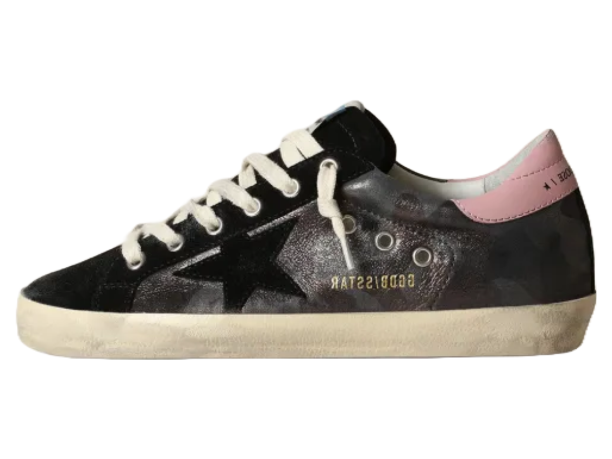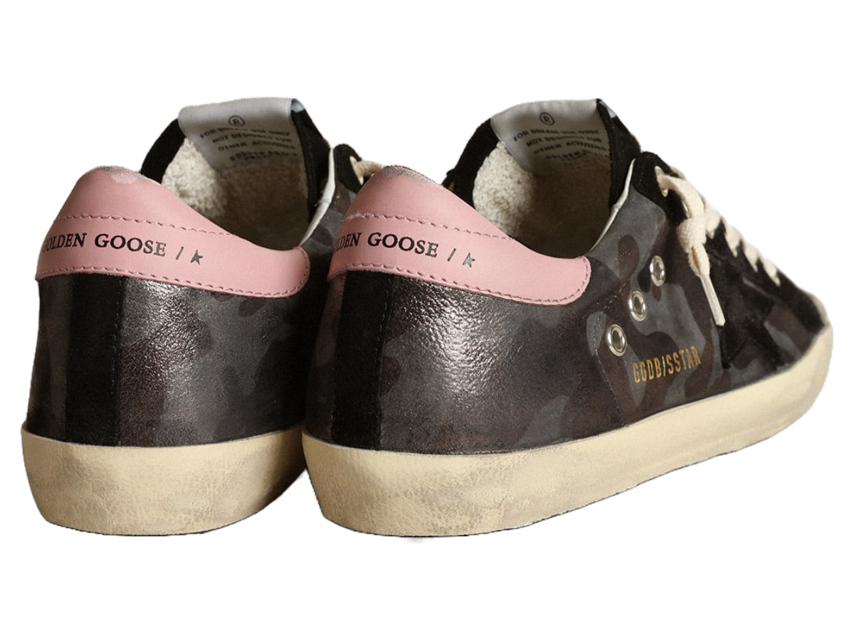 Golden Goose Super-Star LTD sneakers in metallic camouflage nappa leather with black suede star and pink leather