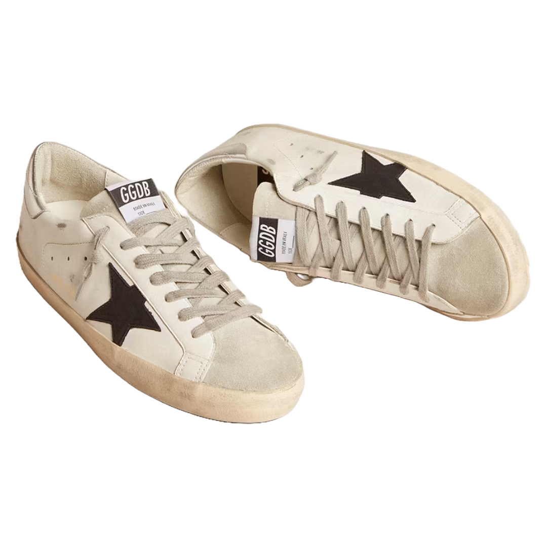 golden goose Men’s Super-Star with black nubuck star and silver leather heel