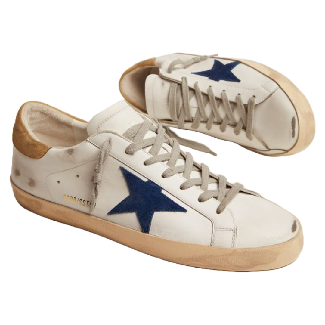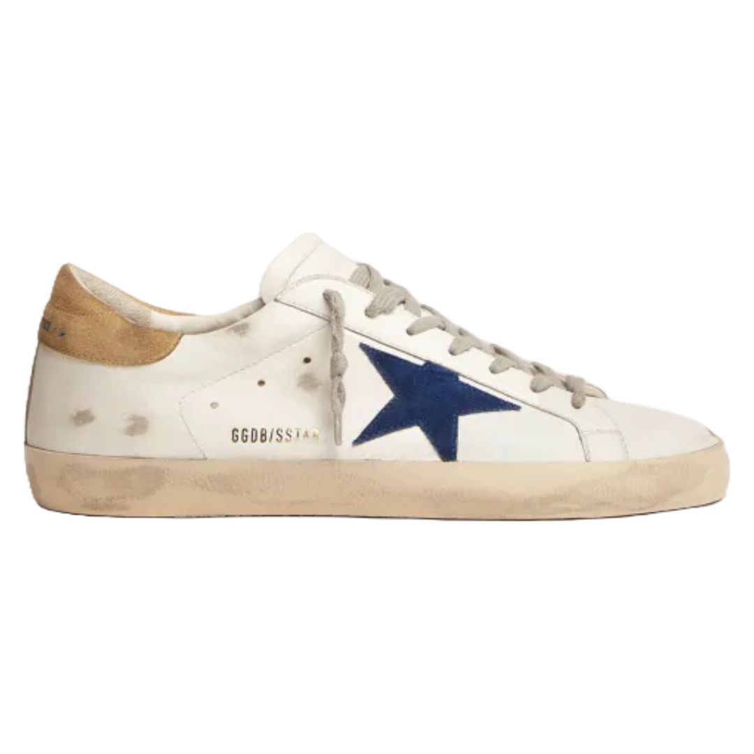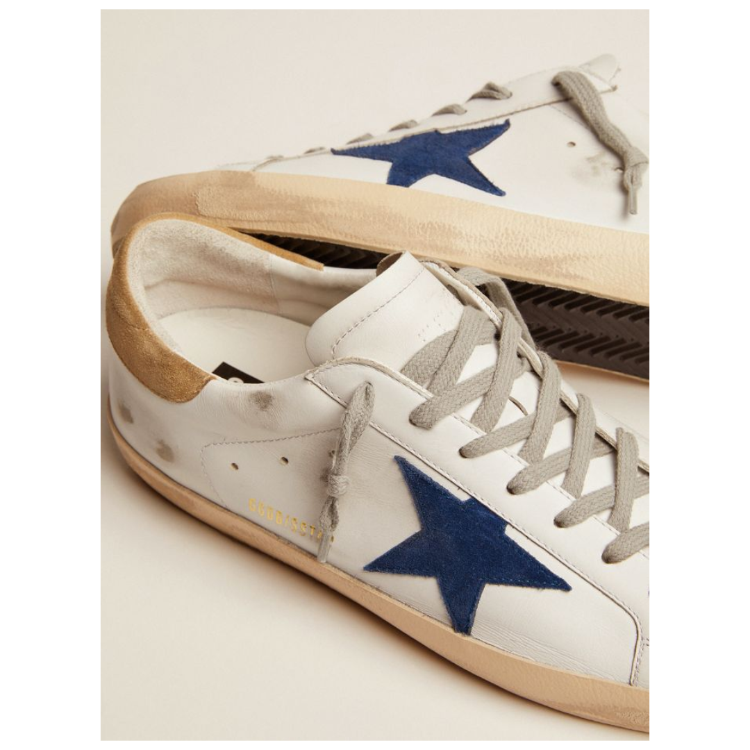 Golden Goose Super-Star sneakers with sand-colored suede heel tab and blue suede star