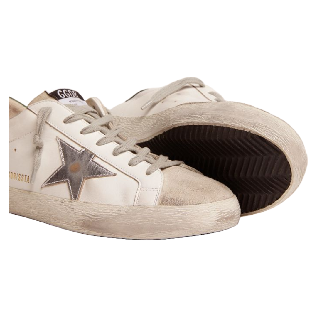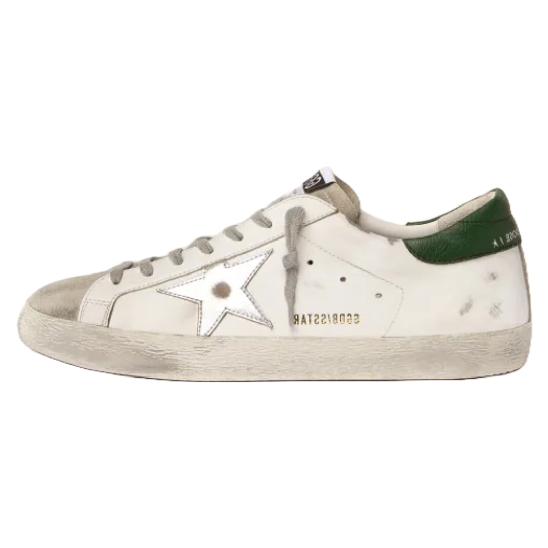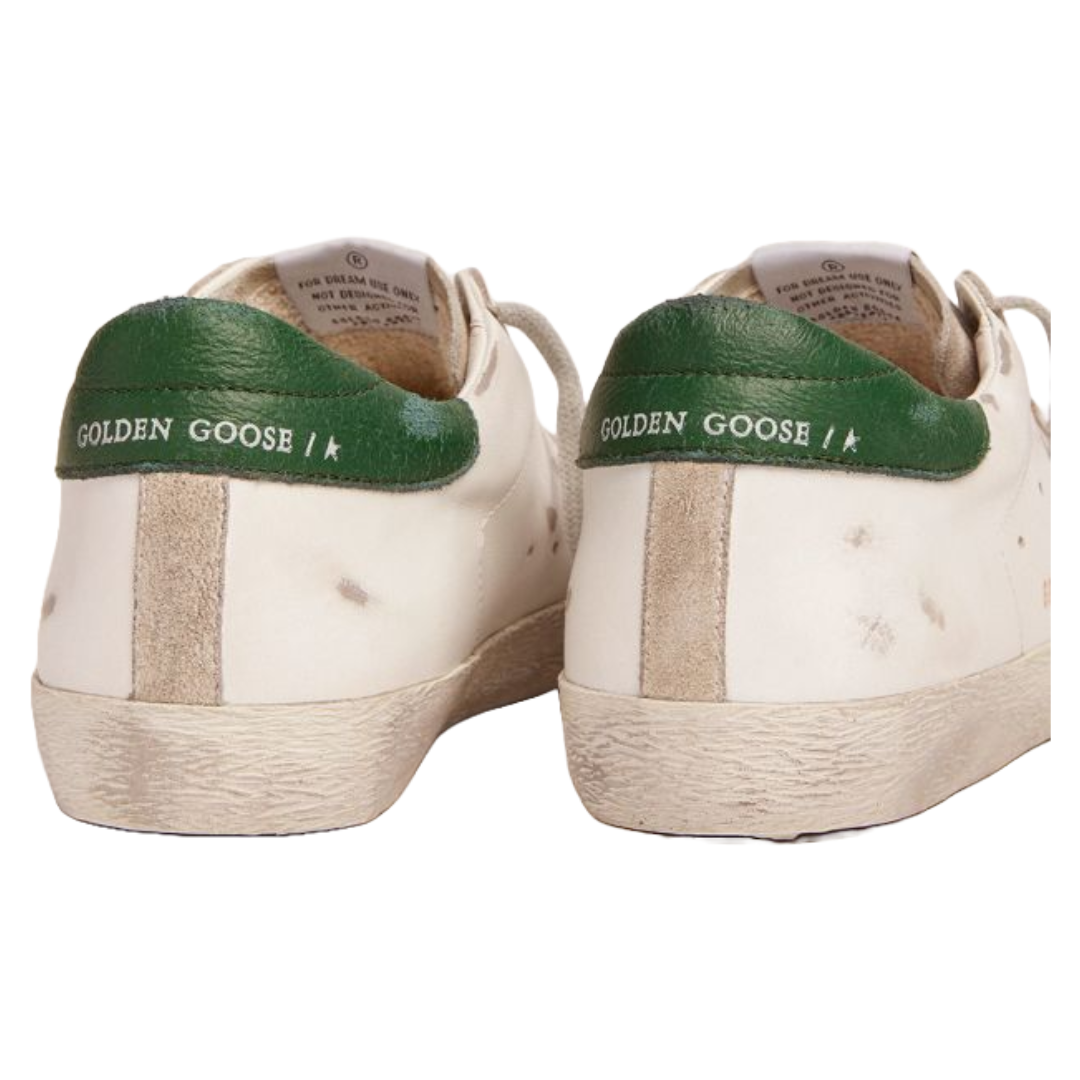 Golden Goose Super-Star sneakers with green leather heel tab and silver laminated leather star
