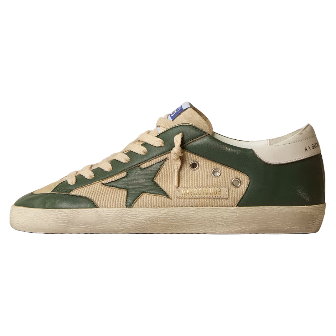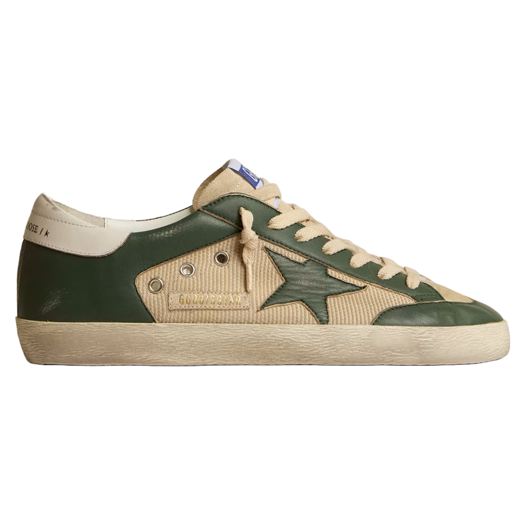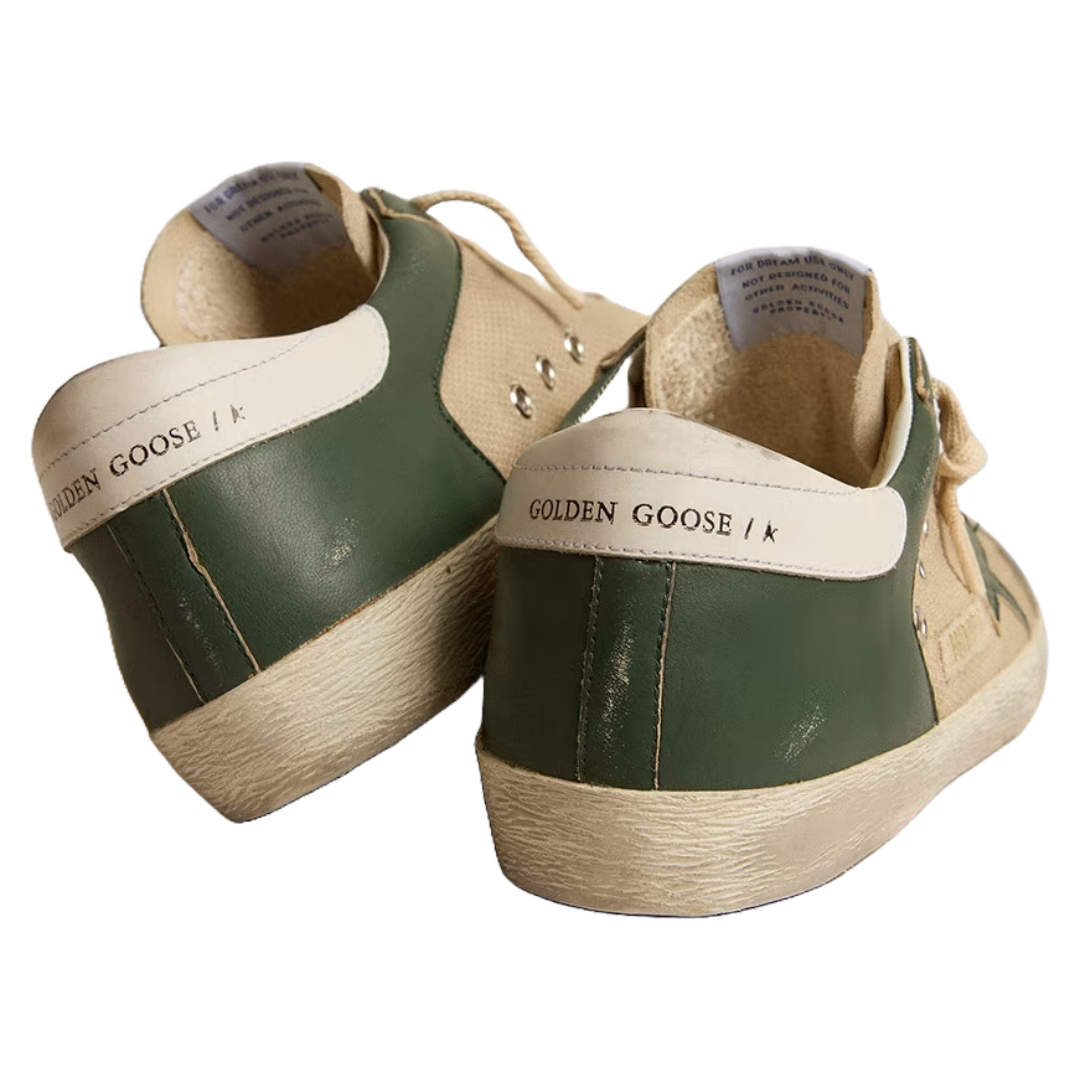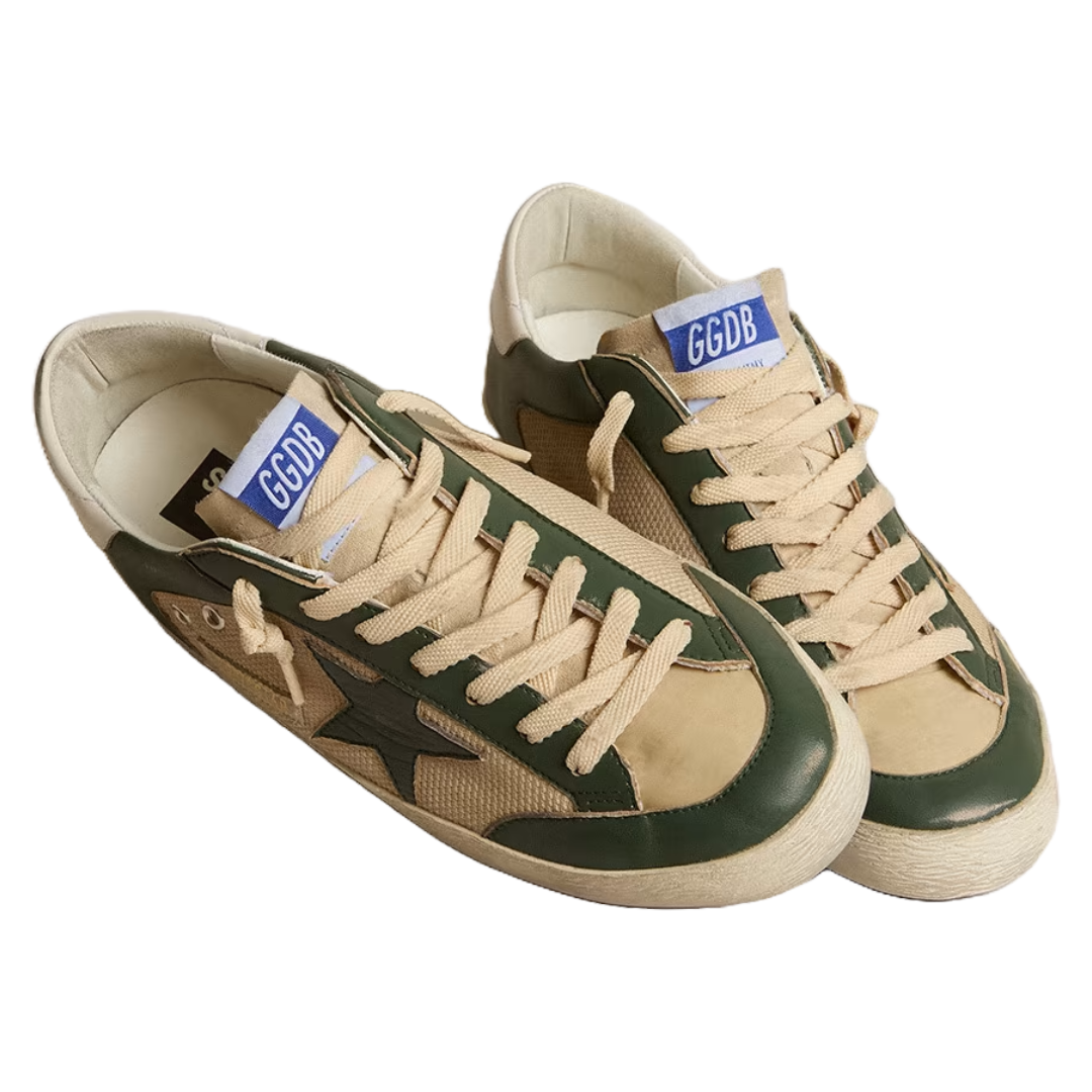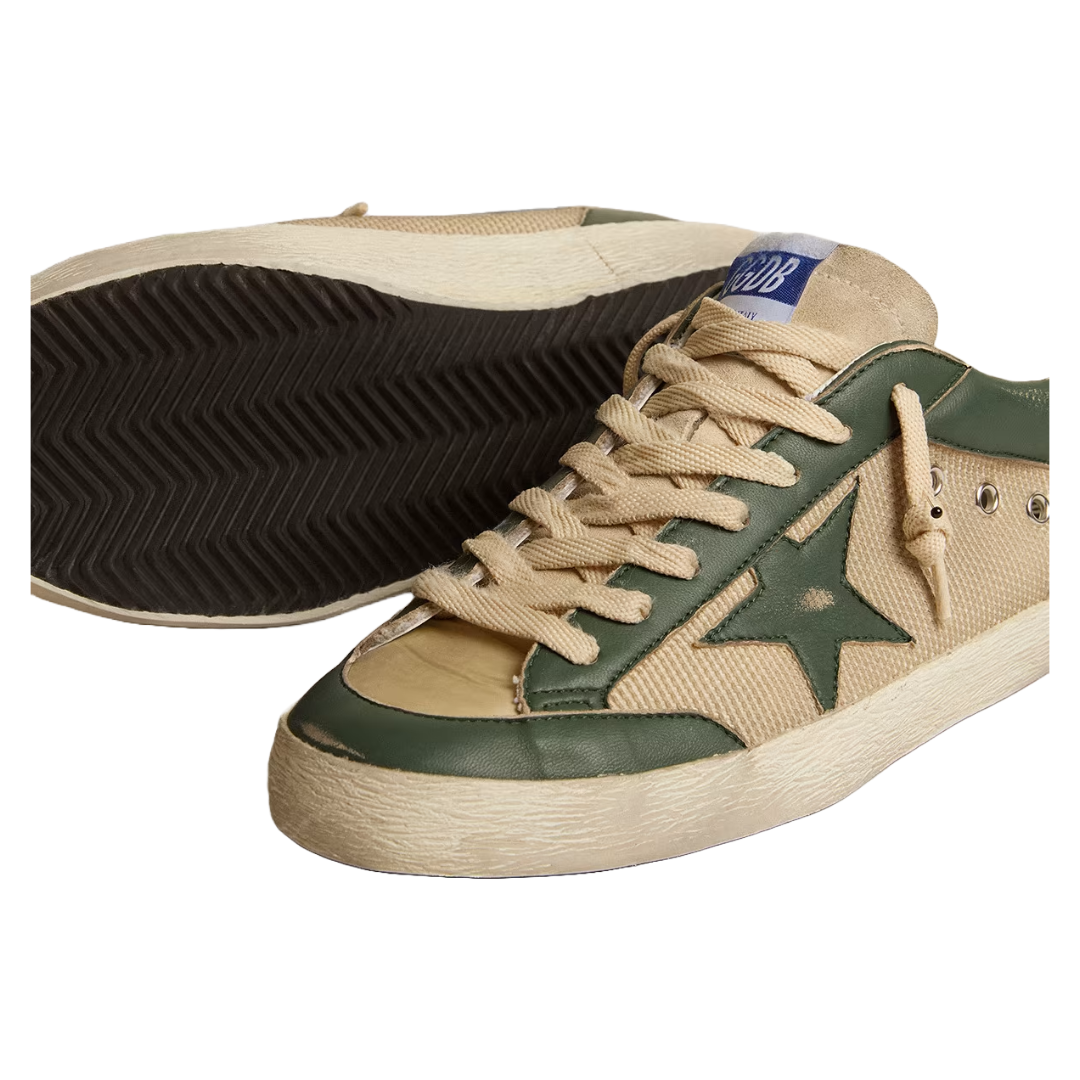 Golden Goose Men’s Super-Star LTD in cream mesh and green nappa with nappa star