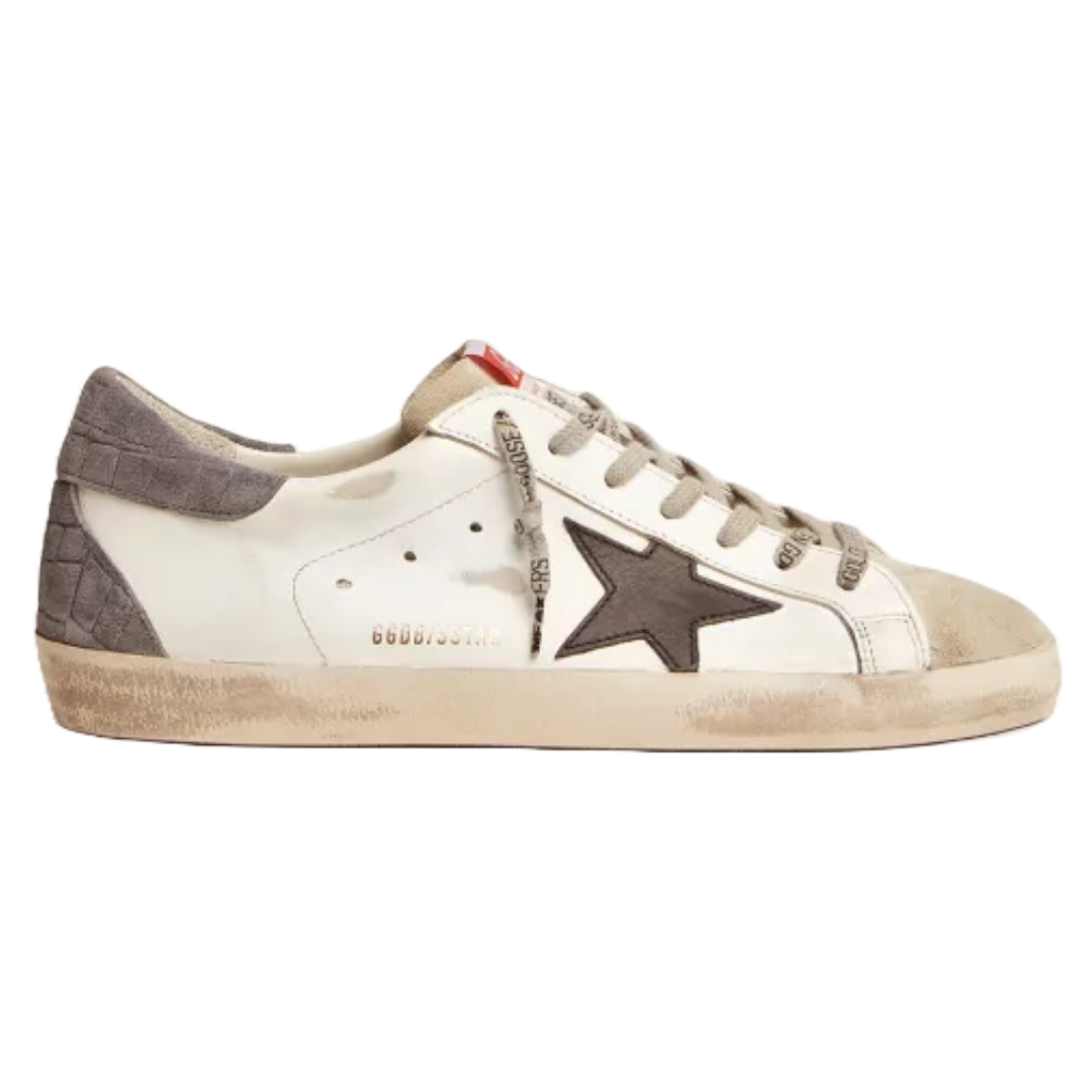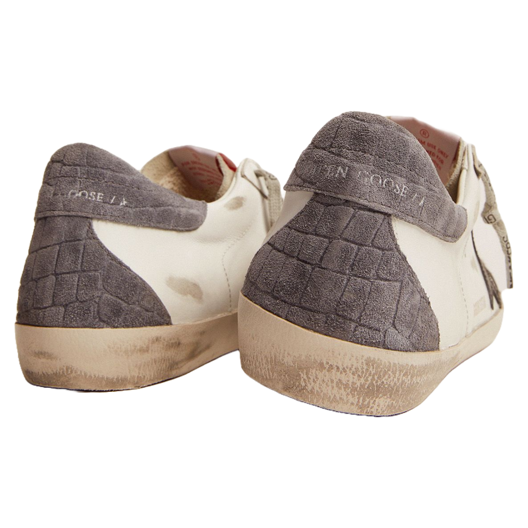 Golden Goose Super-Star LTD sneakers with black leather star and gray crocodile-print suede heel