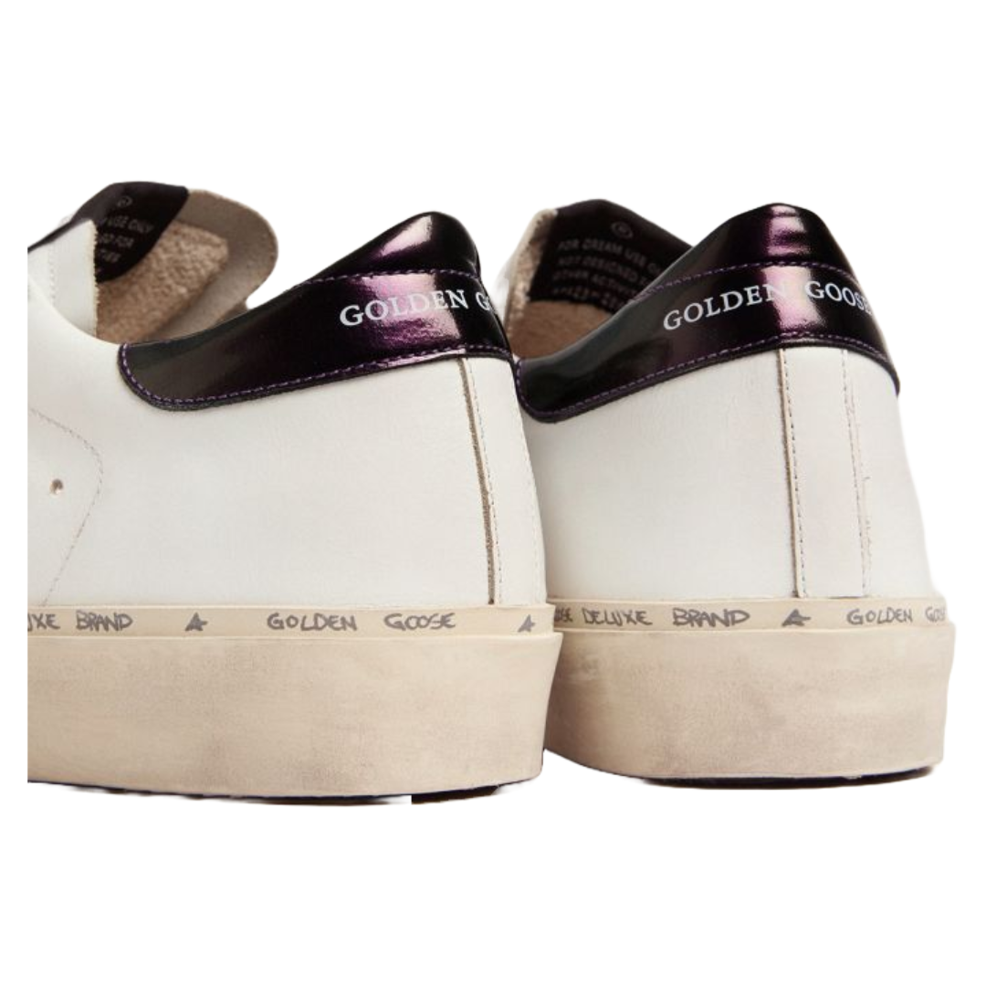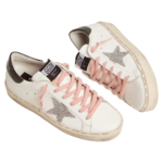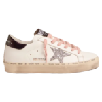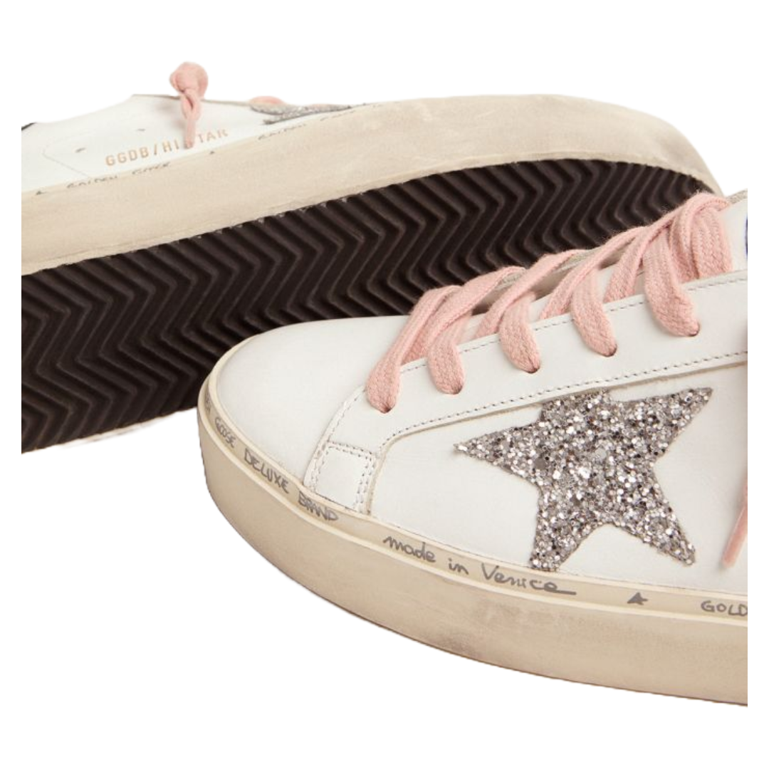 Golden Goose White Hi-Star sneakers with glittery star and pink laces