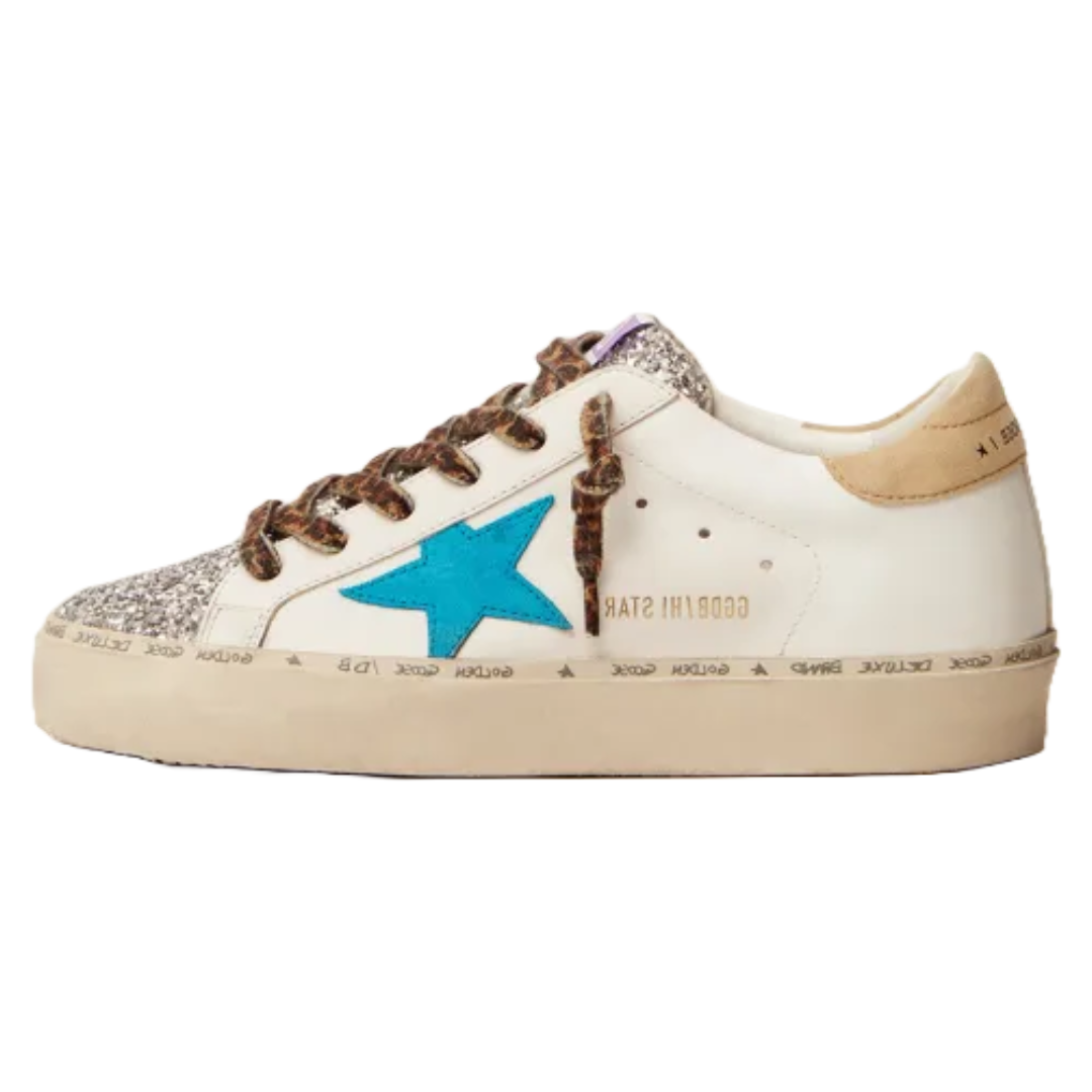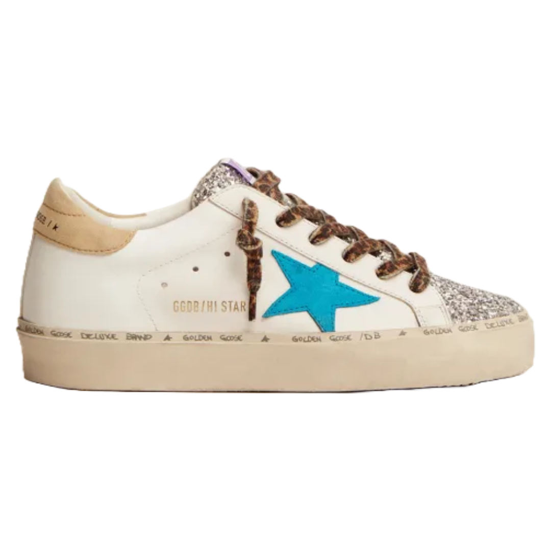 Golden Goose Hi Star LTD sneakers with silver glitter tongue and cyan-blue suede star