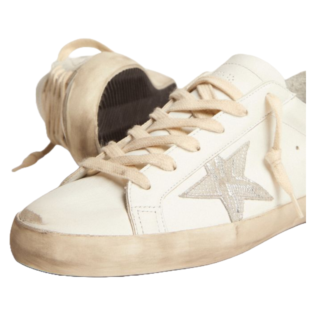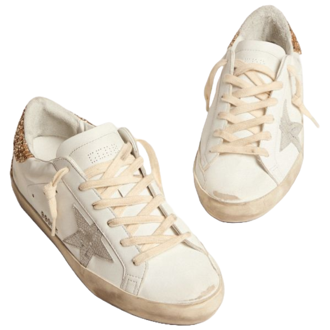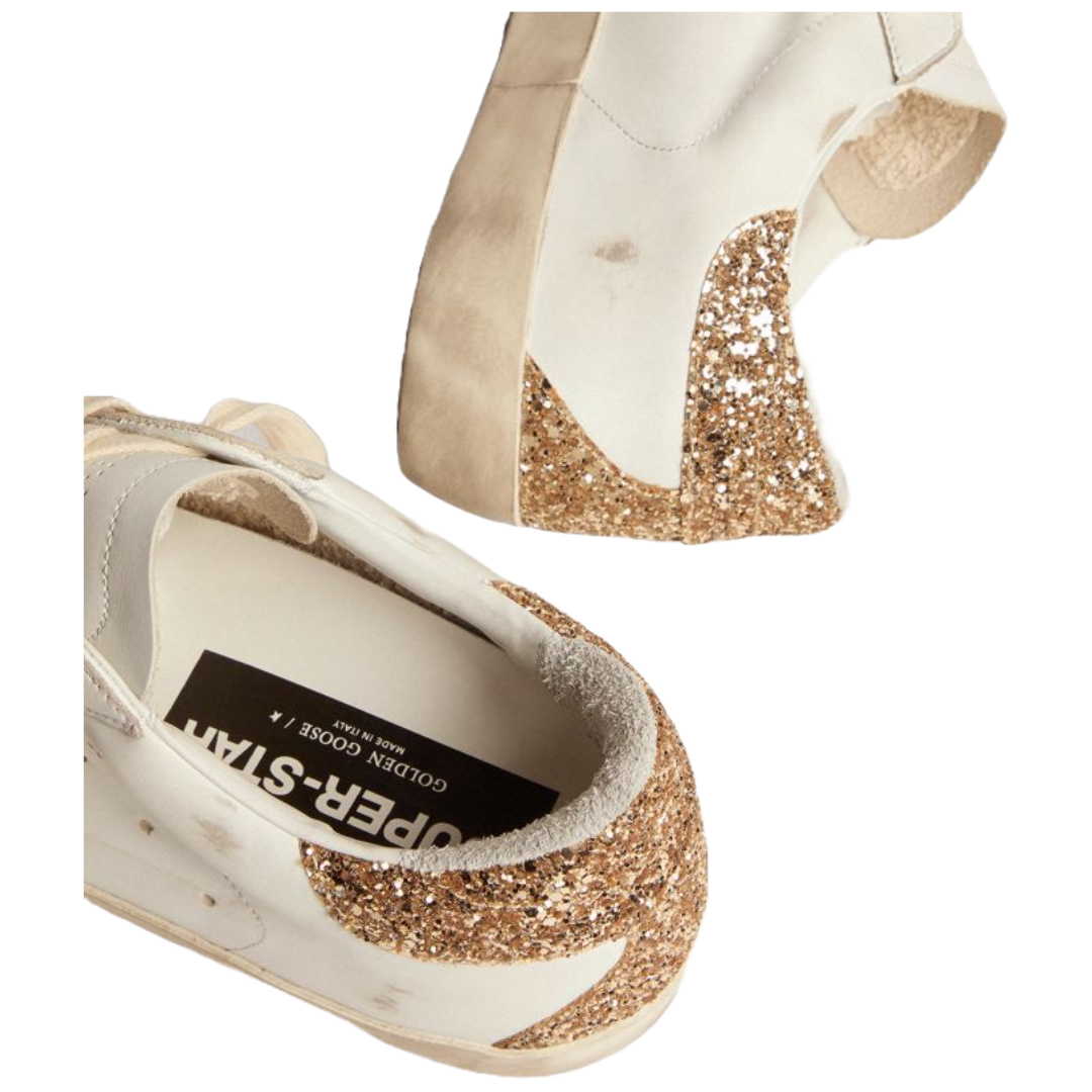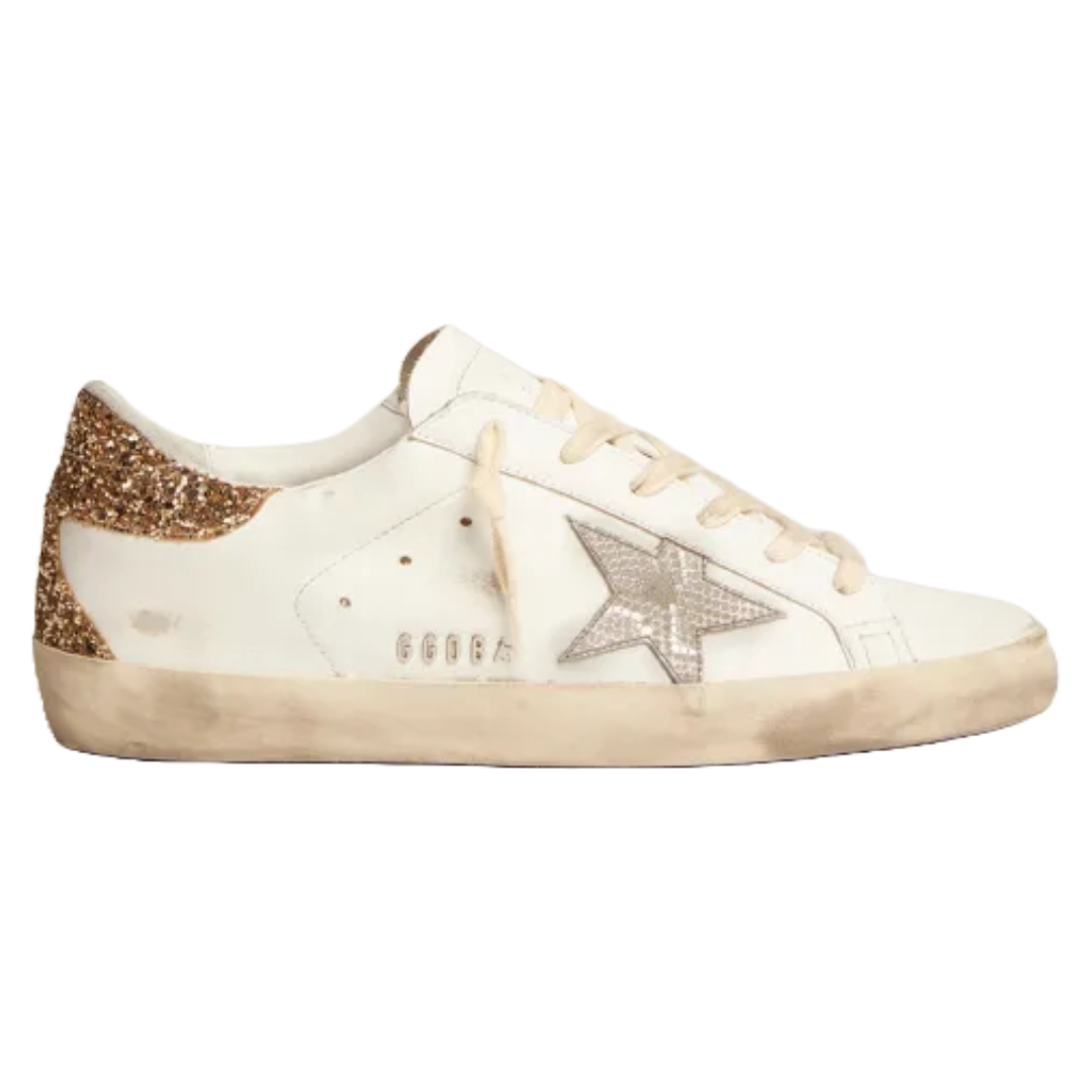 Golden Goose Super-Star sneakers with snake-print silver leather star and gold glitter heel