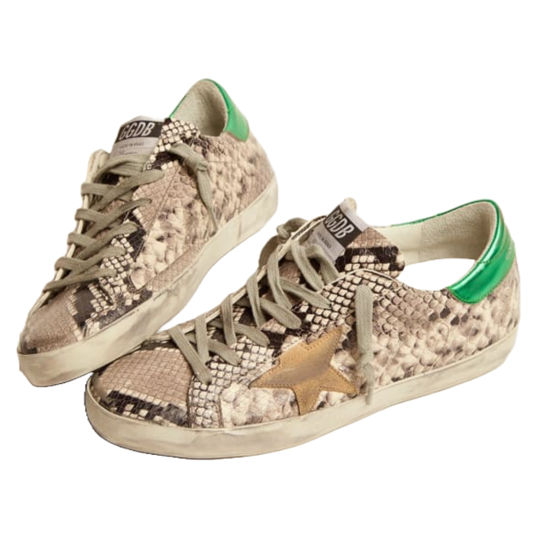 Golden Goose Super-Star LTD sneakers with snake-print leather upper and green laminated leather heel