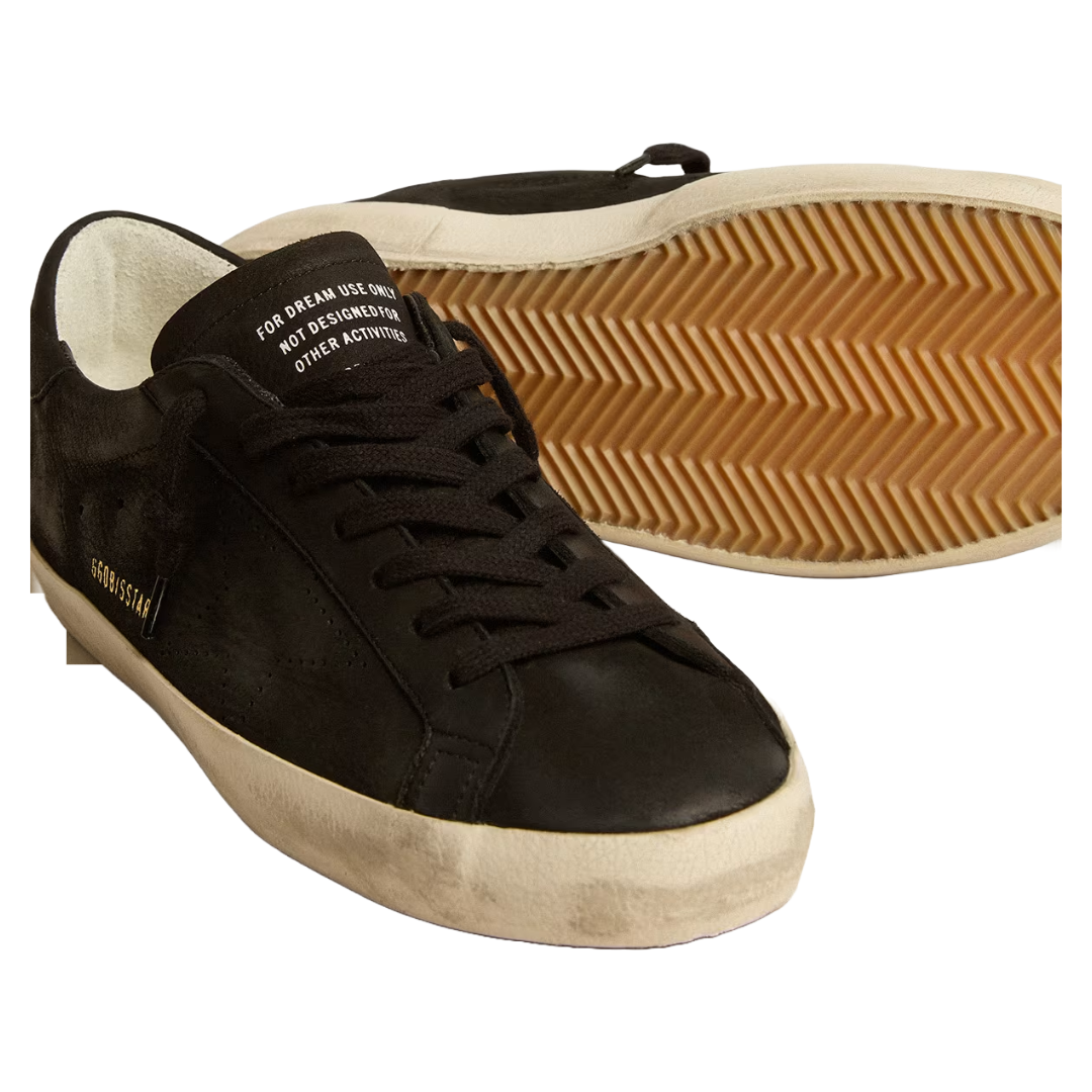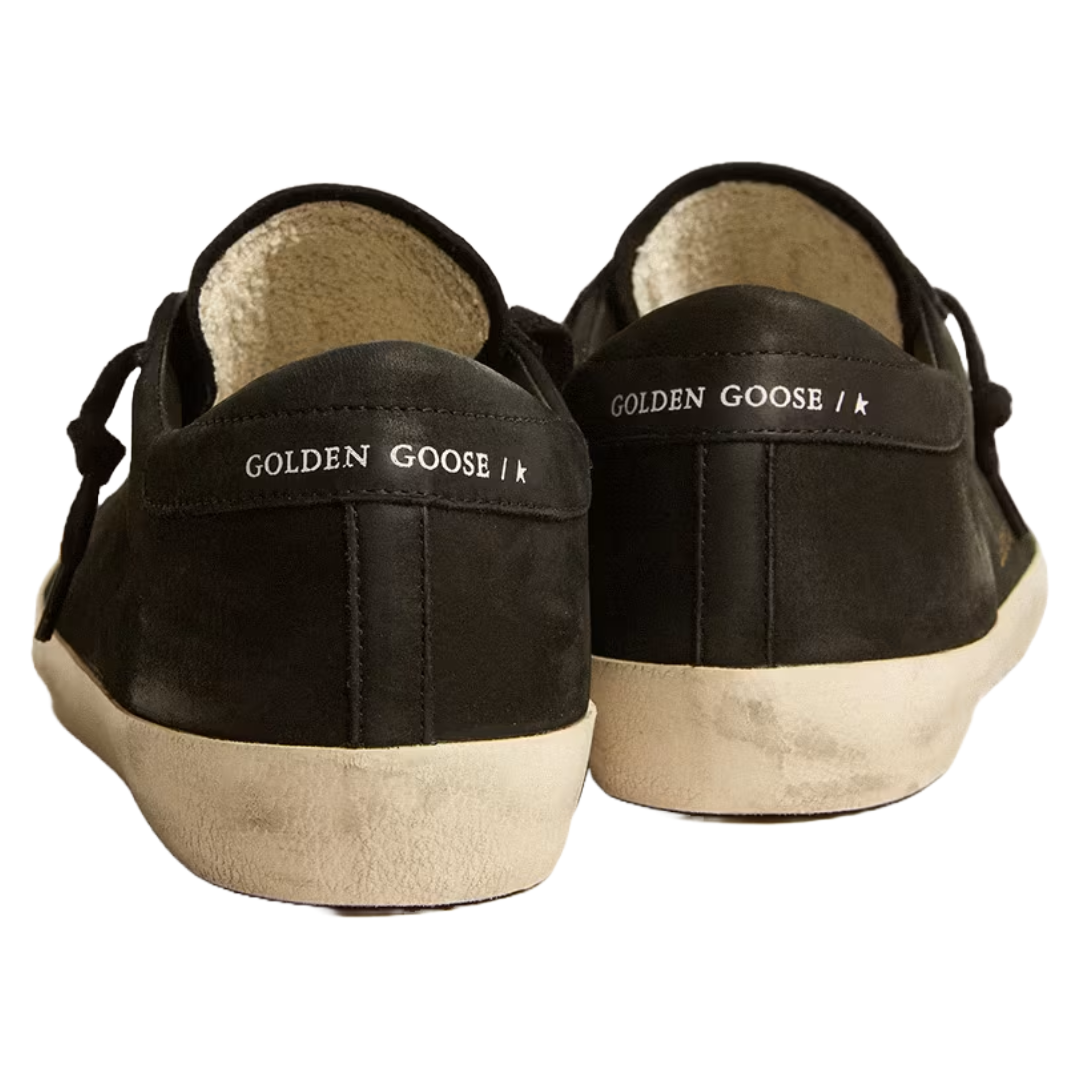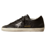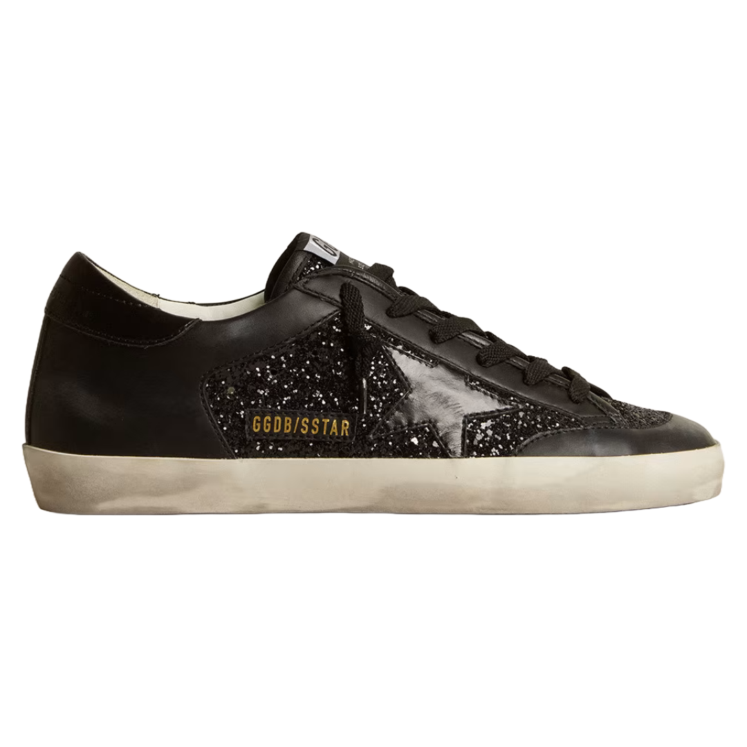golden goose Women’s Super-Star in black nappa and glitter with glossy black leather star