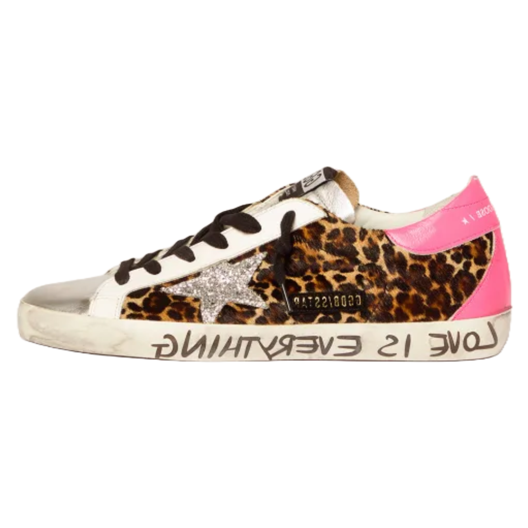 Golden Goose Super-Star sneakers in leopard-print pony skin with silver glitter star